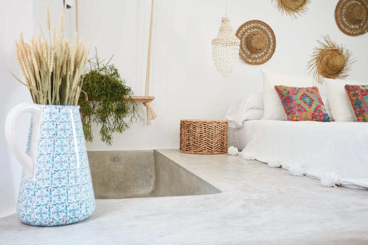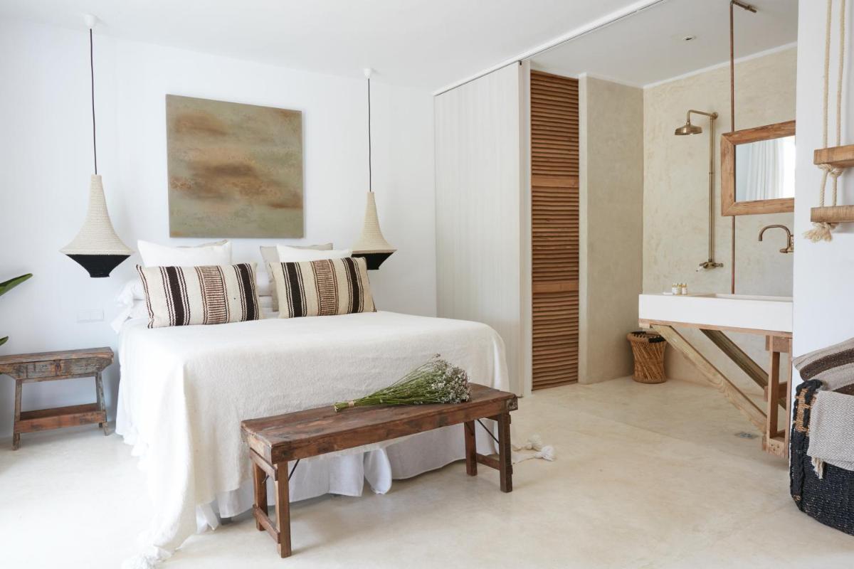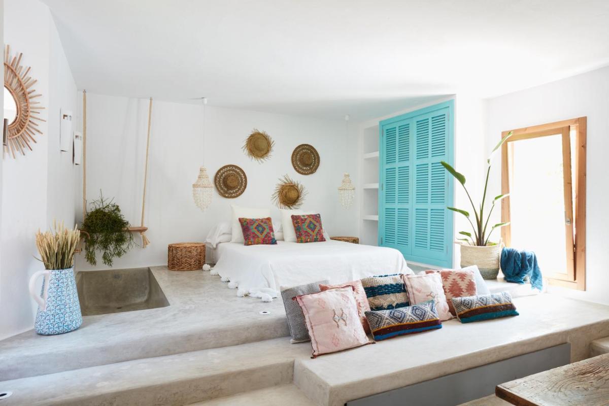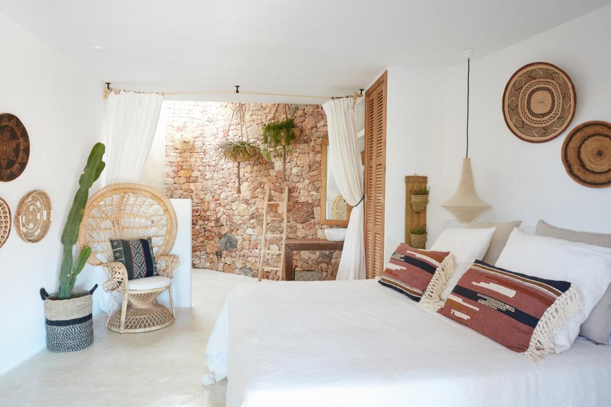The structure is a traditional Formentera finca, restored with extreme care to maintain its rustic charm (white walls, dark wood) integrated with a modern, minimalist, and luxurious interior design. The few rooms and suites offer absolute privacy, private terraces, and an atmosphere that invites deep relaxation, often without the distraction of a TV.