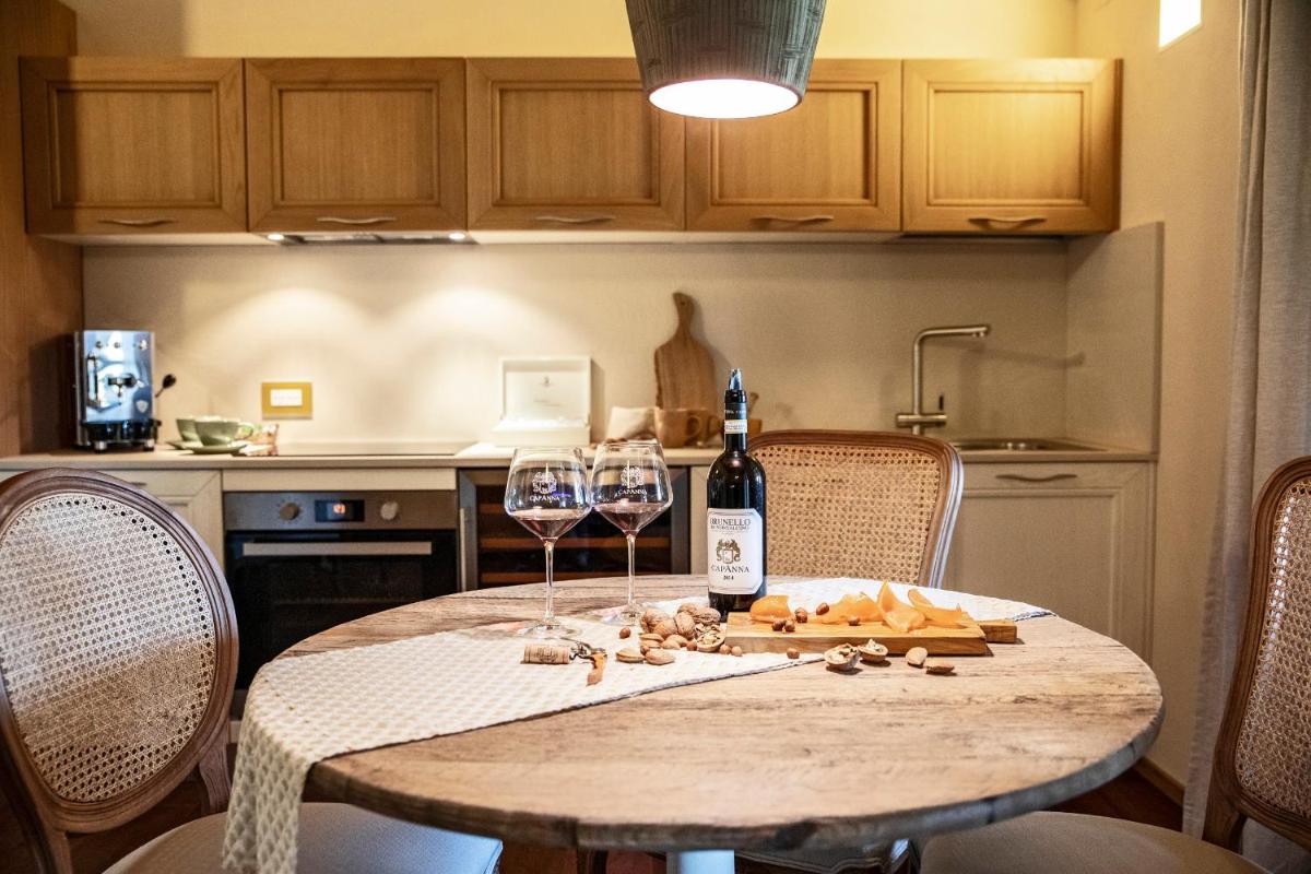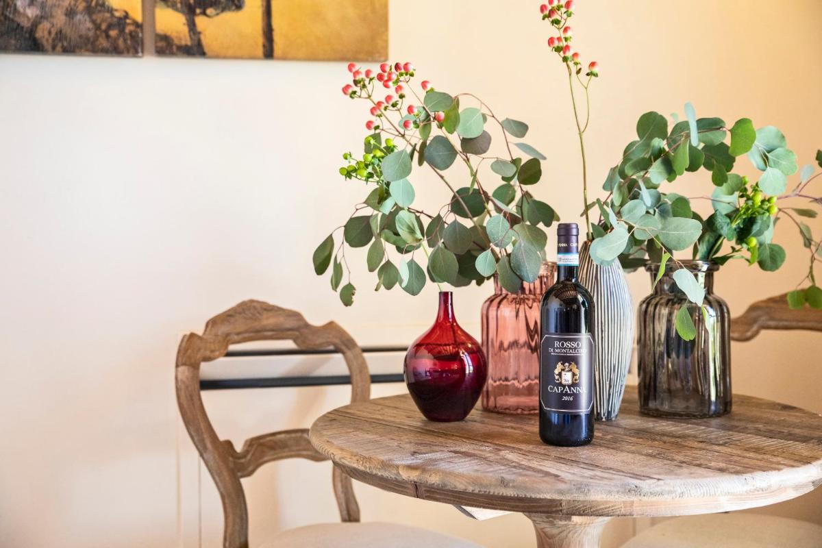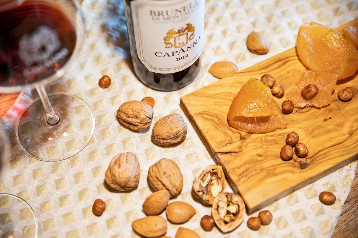 The in-house restaurant, "Il Passaggio by Capanna", offers Italian and Tuscan gourmet cuisine, enhancing local flavors with fresh, regional products. Breakfast is served at the table with a panoramic view. The wine experience is central: guests can enjoy guided tastings, visit the charming stone gallery cellar, and discover the secrets of the Brunello production process.