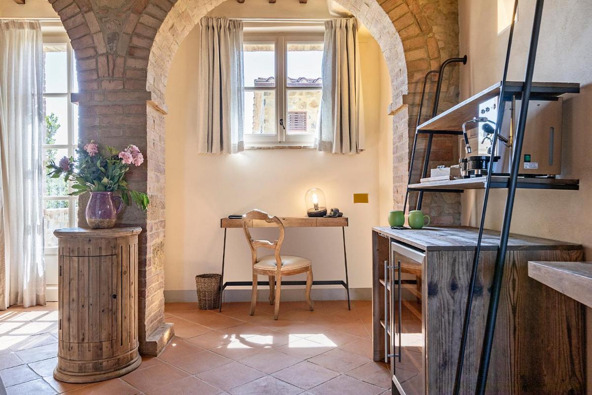 The wellness area, known as Agriwellness, is the property's highlight. The SPA is offered for exclusive use for one hour per stay (upon reservation), and includes a heated indoor pool with hydromassage, sauna, Turkish bath, and chromotherapy shower. Externally, the hotel boasts a splendid Seasonal Infinity Pool with a sun terrace and unparalleled views of the Val d'Orcia and the vineyards. The property also offers Free Private Parking, bicycle rental, and concierge service to organize activities and tours in the area.
