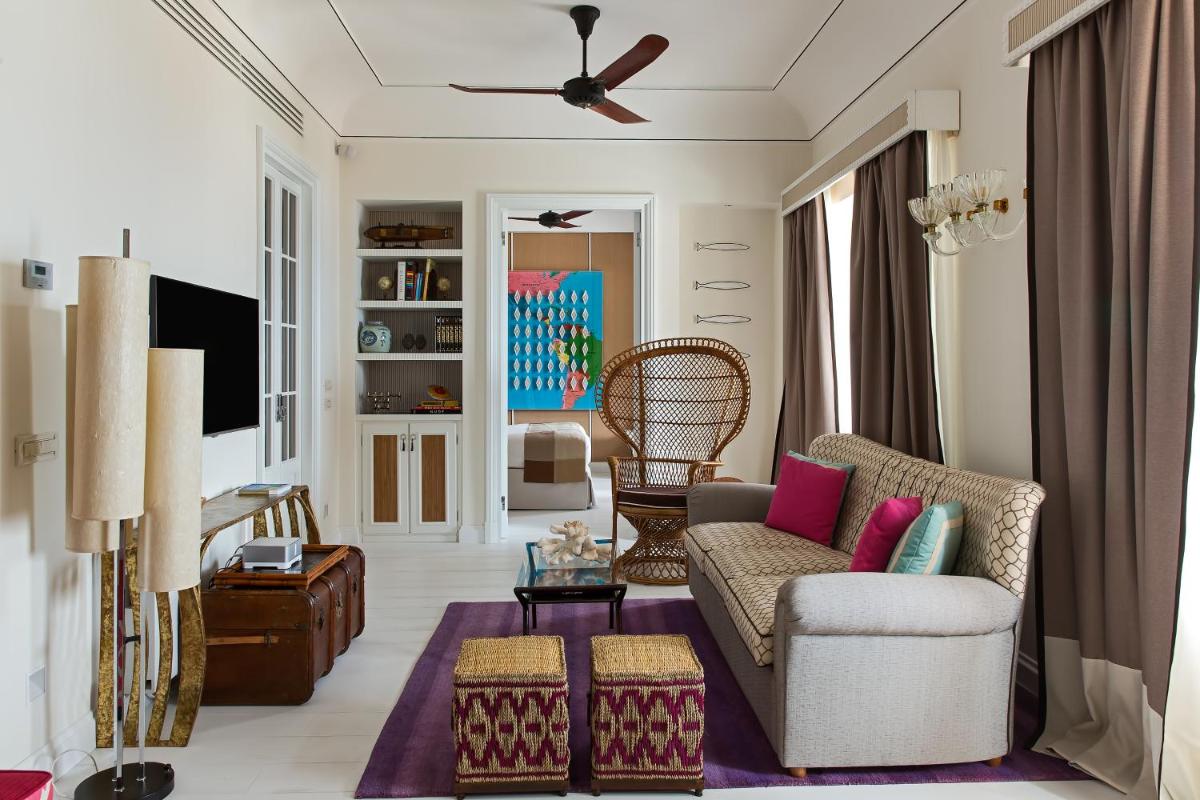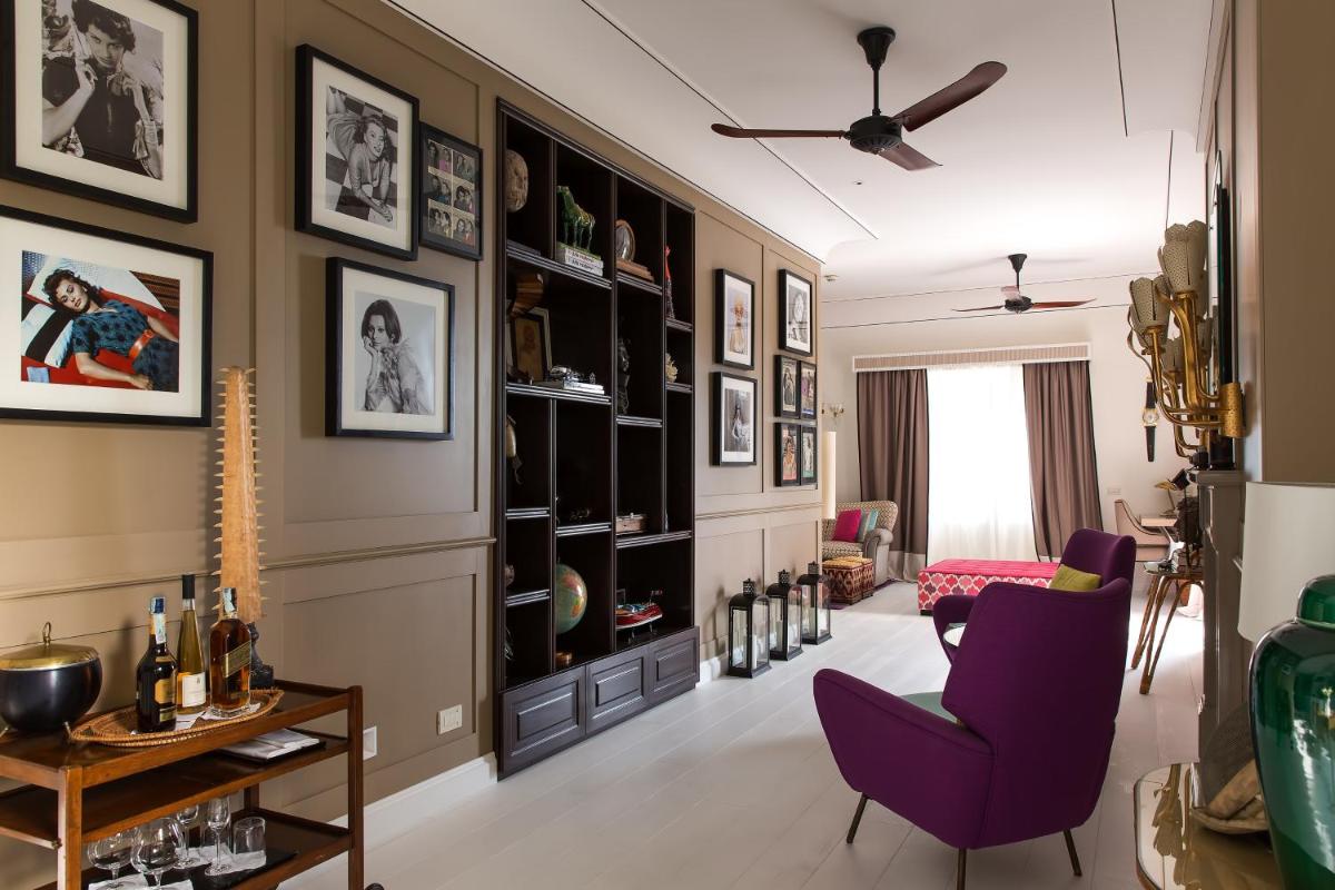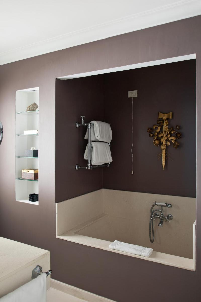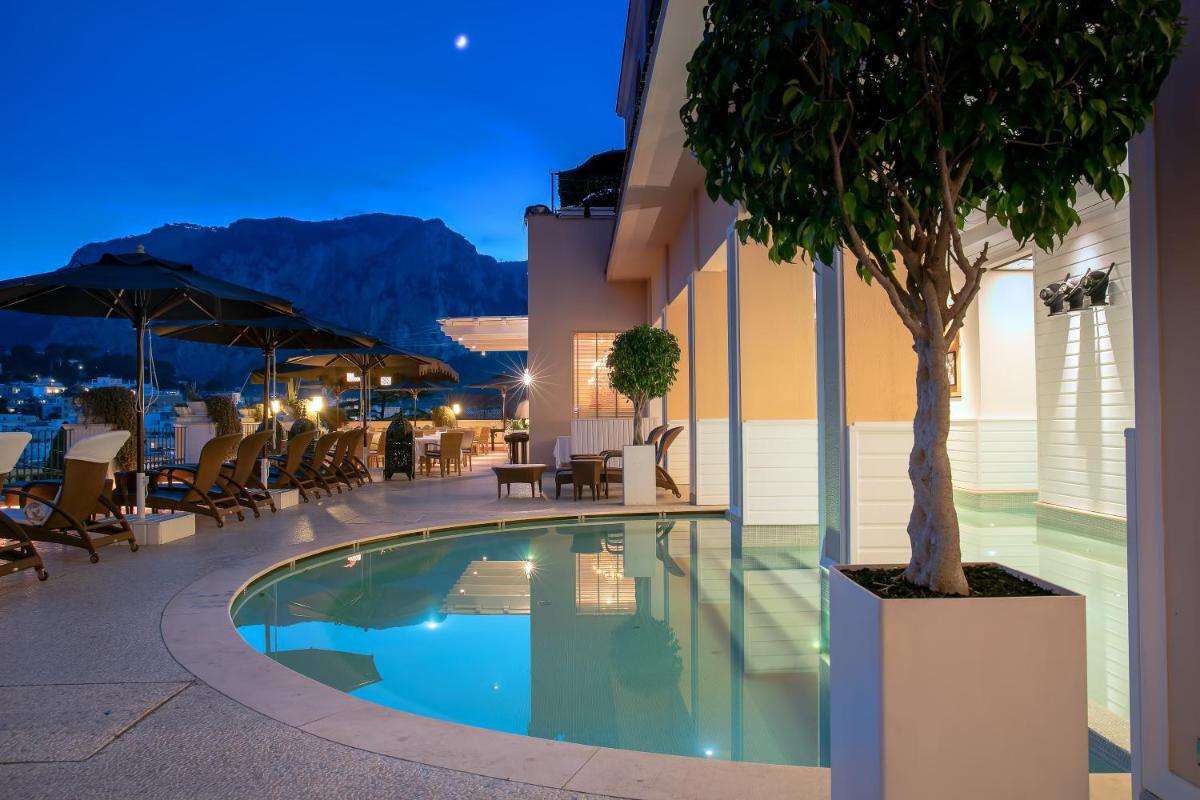 The 45 rooms and suites, all different from each other, are an homage to the island's color and light. The design is meticulously detailed, featuring painted tile floors, custom-made furnishings, and shades ranging from dusty blue to saffron yellow. Almost all accommodations feature balconies or tiled terraces that offer expansive views of the Mediterranean Sea and the white roofs of Capri. Among the most exclusive suites are the Dolce Vita Suite and the luxurious Capri Suite.