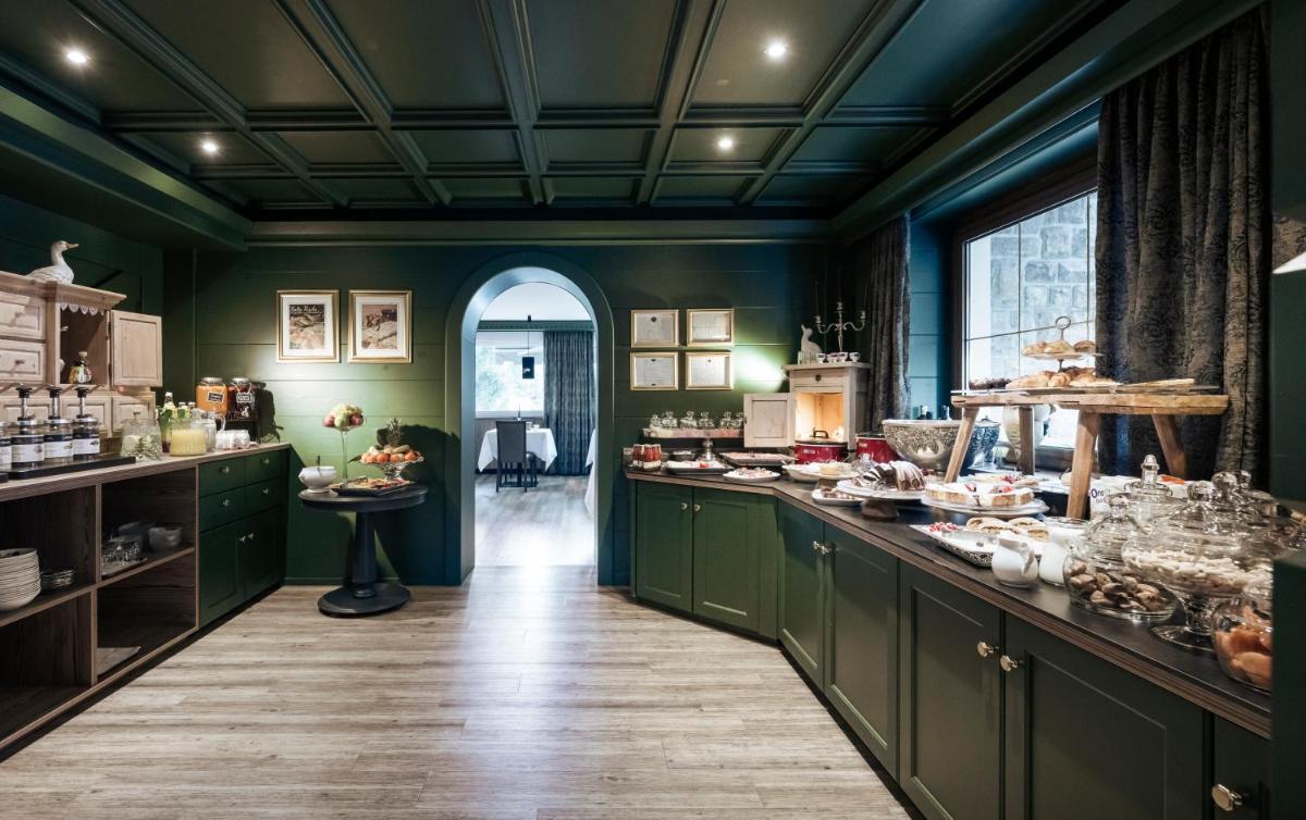 The hotel’s restaurant offers gourmet cuisine that celebrates the flavors of Trentino Alto-Adige with a modern touch. Fresh and local products, often sourced from the hotel’s private garden, are used. Breakfast is a rich buffet of sweet and savory regional products, while a high-quality fixed menu is offered in the evening. Services include free private parking, a heated ski storage room, and e-bike rental. The hotel also provides the Val Gardena Mobil Card for free use of all local buses.