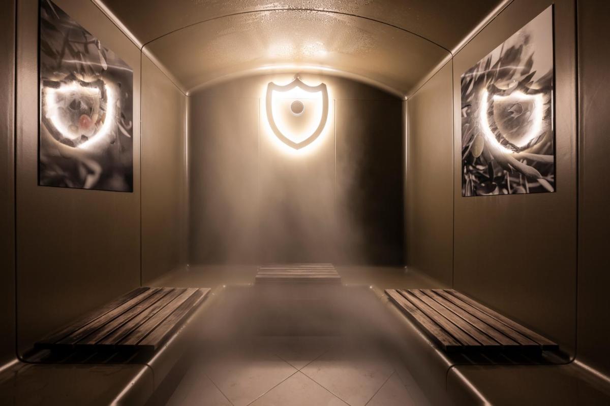 A highlight of Alpstay is its refined Wellness area, designed for complete relaxation. It includes a heated indoor pool and an outdoor pool with mountain views. Guests can enjoy various saunas, including a Finnish sauna and a Turkish bath, as well as a relaxation area with waterbeds and herbal teas. Professional beauty treatments and massages are available upon reservation to complete the wellness experience.