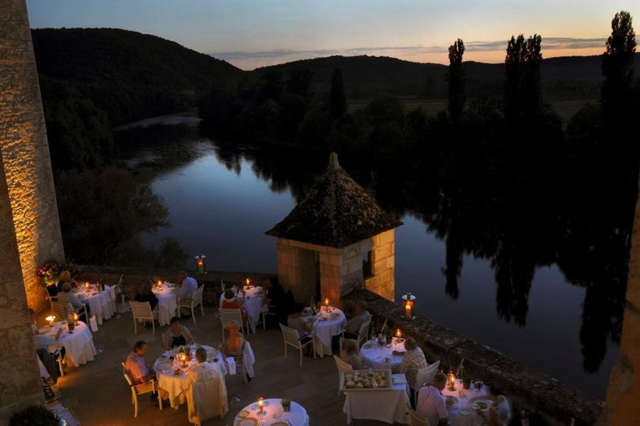 The Château De La Treyne's gastronomic restaurant is often celebrated for its culinary excellence, offering cuisine that honors the flavors of the Périgord. The dining room, with its large bay windows, provides an unrivaled panoramic view of the Dordogne, making every meal a special occasion. It is an experience of high French cuisine in a historical setting.