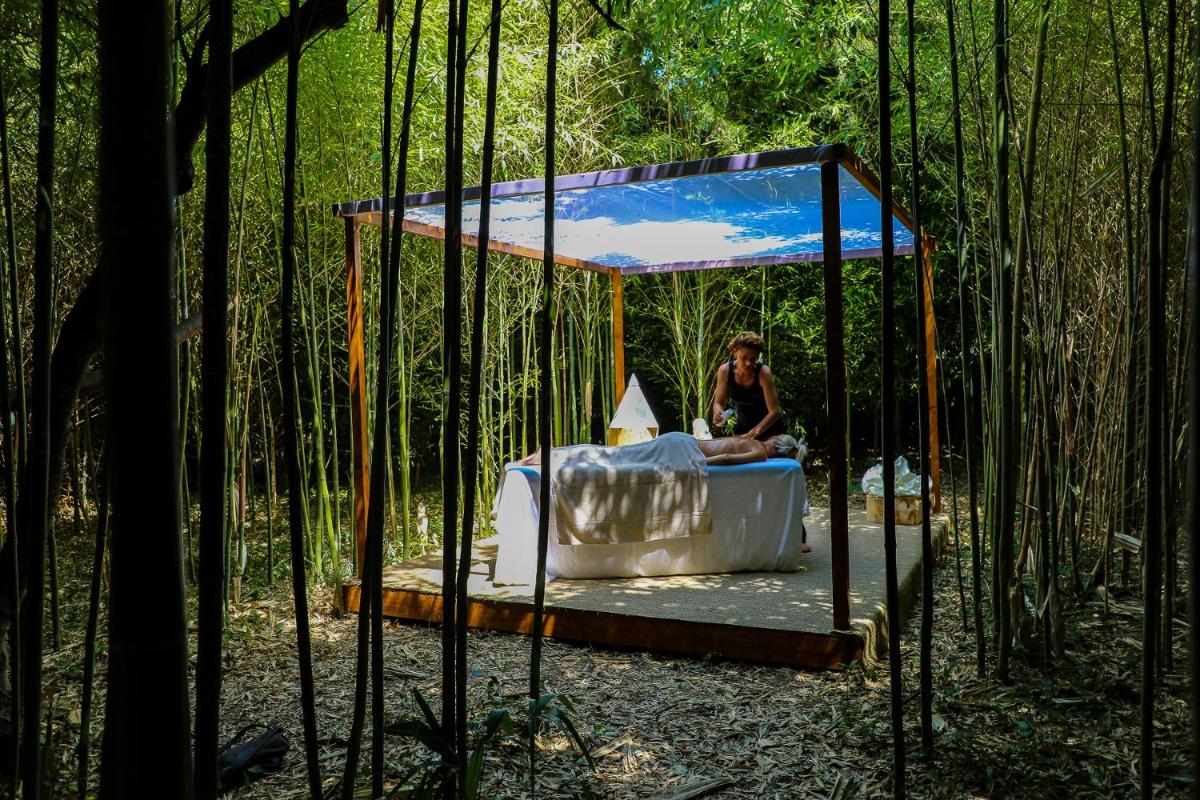 The lovingly maintained gardens are an invitation to long, meditative walks. The plane tree alley is iconic, creating a cool and evocative shade. The park also hosts an outdoor swimming pool, perfect for cooling off while enjoying the view of the surrounding countryside, among olive trees and cypresses.