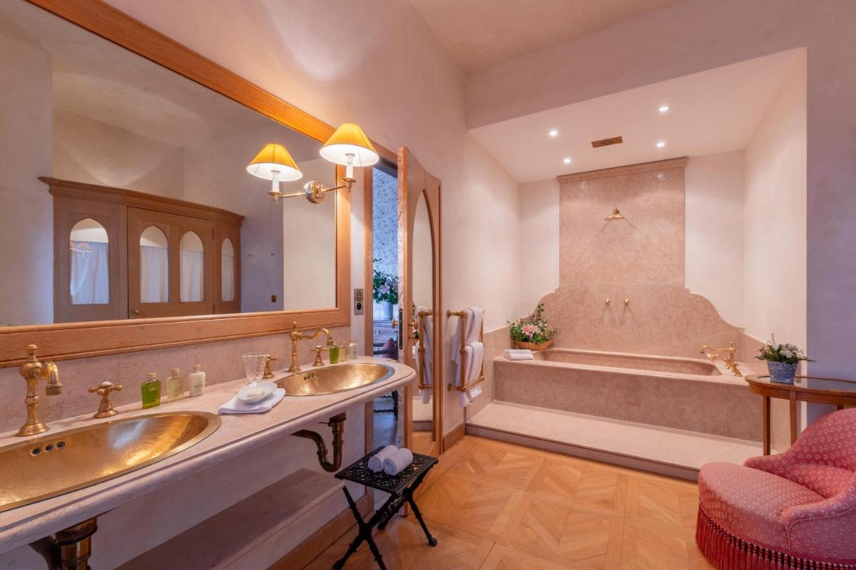 The castle is surrounded by splendid terraced gardens, true oases of peace from which guests can enjoy a spectacular view of the mountains. The outdoor pool, discreet and well integrated into the landscape, offers an exclusive place for relaxation. Attention to privacy and the outdoor environment is a distinctive feature of this regal retreat.