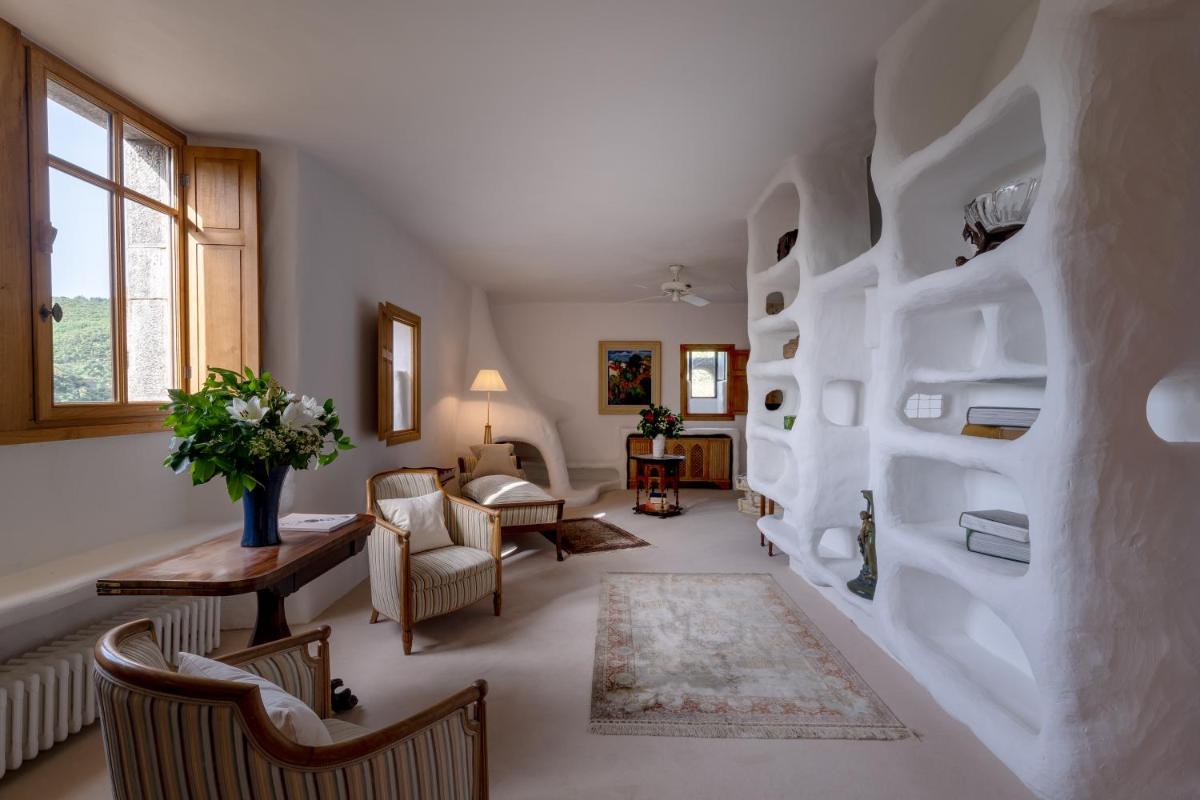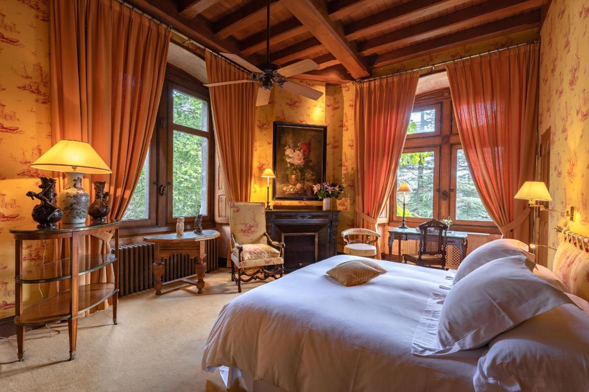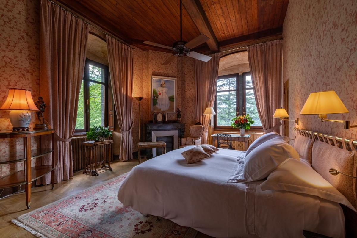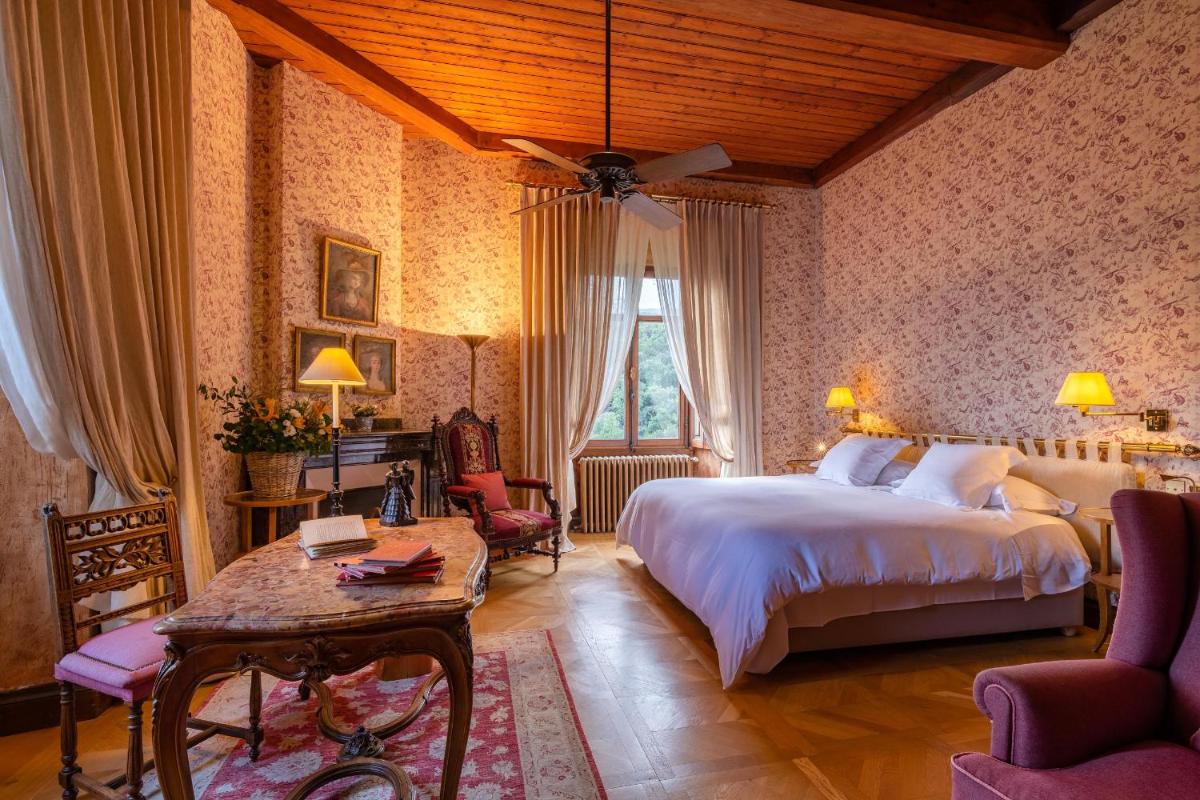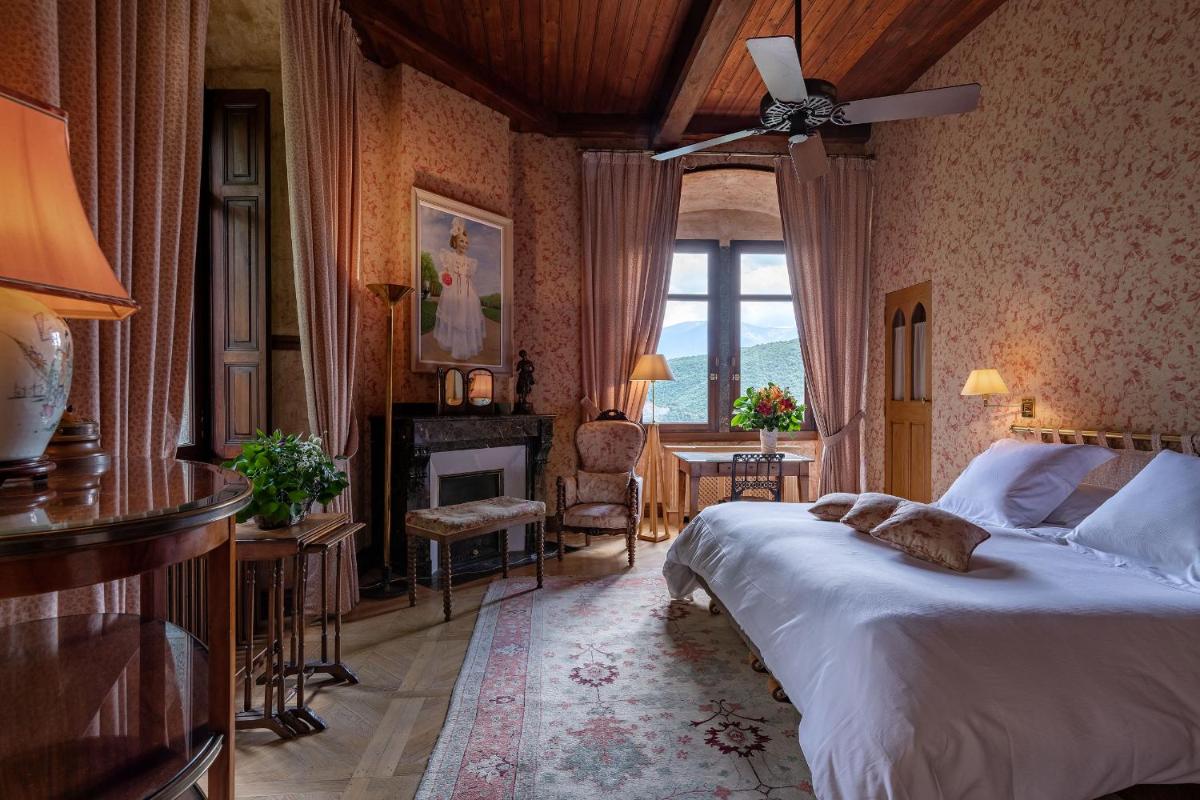The castle's interiors are characterized by an exotic and sophisticated style, with furnishings ranging from Chinese art to Provençal furniture, creating an eclectic and impactful environment. The rooms and suites are individually decorated, offering a historical fairytale atmosphere, with canopy beds and sumptuous fabrics. Every detail reflects a deep passion for antiques and art.