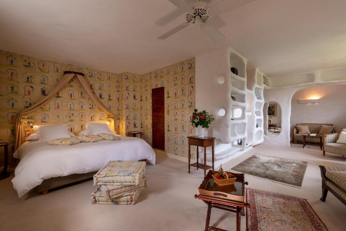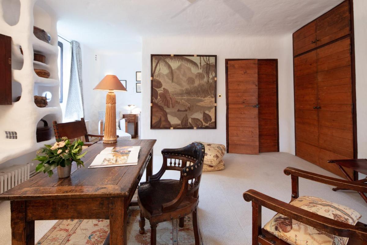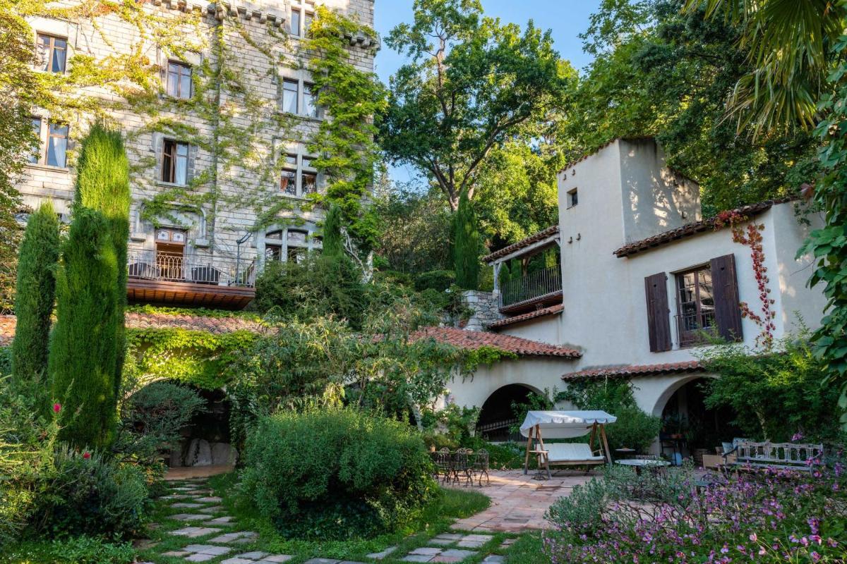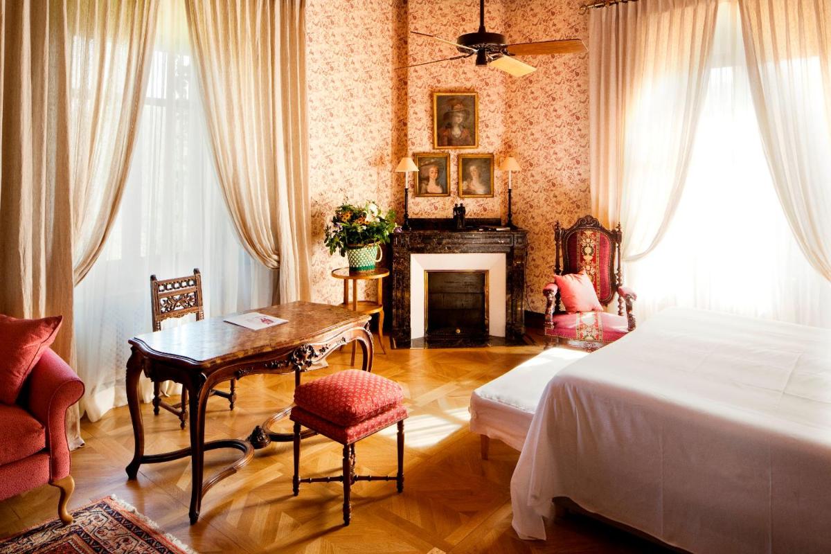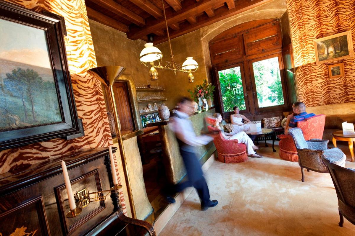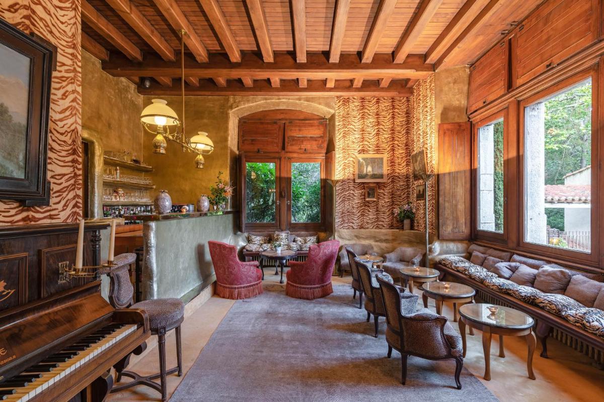 The castle's interiors are characterized by an exotic and sophisticated style, with furnishings ranging from Chinese art to Provençal furniture, creating an eclectic and impactful environment. The rooms and suites are individually decorated, offering a historical fairytale atmosphere, with canopy beds and sumptuous fabrics. Every detail reflects a deep passion for antiques and art.