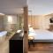 The 46 Junior Suites and Family Suites are meticulously furnished, with cirmolo (stone pine) and larch wood predominating for a warm and relaxing atmosphere. All accommodations offer luxury amenities, free Wi-Fi, and large windows or balconies to fully enjoy the mountain scenery. Many suites feature spacious bathrooms, often open to the room, with large showers and, in superior categories, oval relaxation tubs.