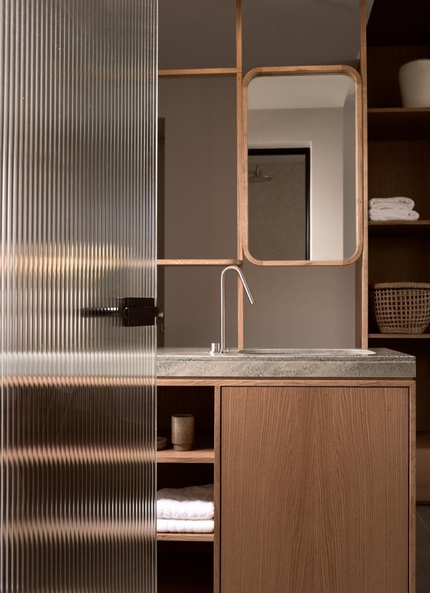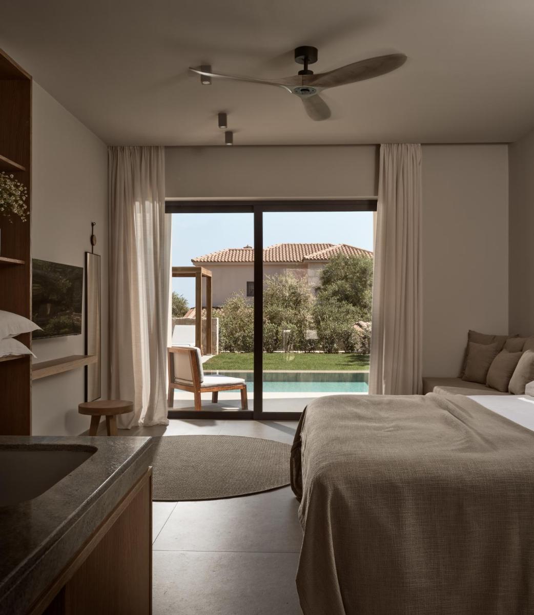 The interiors of Cielo Villas are designed to stimulate the senses through the use of organic materials. Raw wood, natural linen, and exposed stone create a tactile and warm atmosphere. Every detail, from the large windows that capture the golden light of dawn to the handcrafted furnishings, is designed to dissolve the barrier between the home and the vibrant nature of Zante.