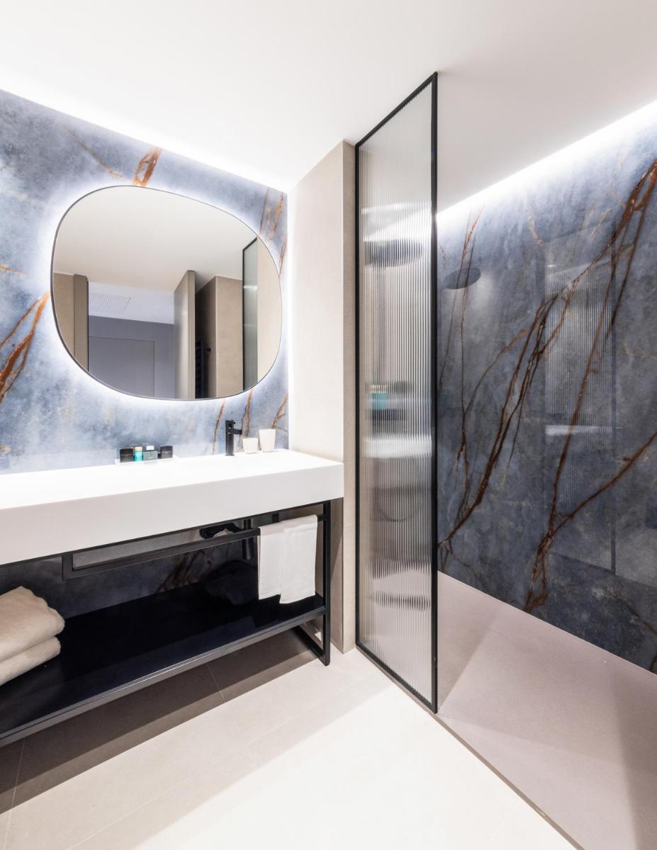 The hotel rooms, available in Standard, Superior, Deluxe, and Premium categories, feature a fresh and minimal design. Every detail is crafted for maximum comfort: from king-size beds with high-quality linens to Rituals branded toiletries. Ground-floor accommodations boast a private garden, while upper-floor rooms offer panoramic terraces overlooking the stunning resort pool.
