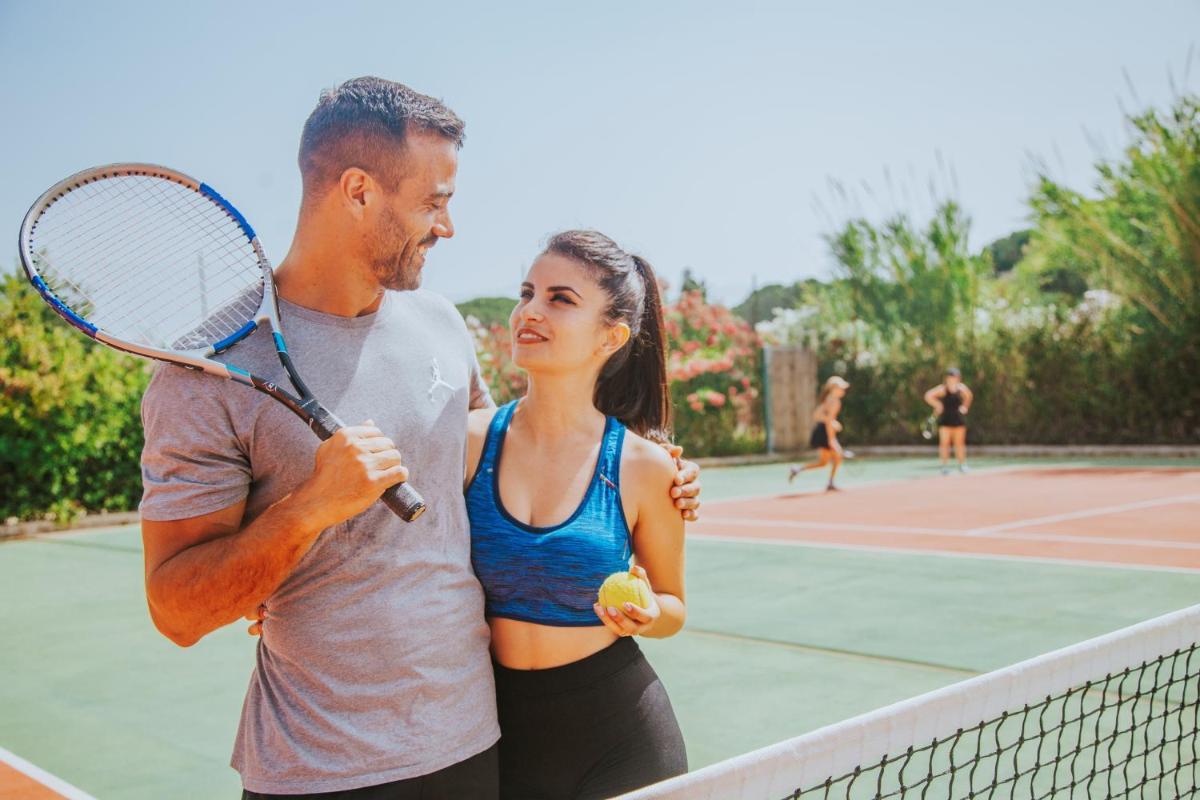 The private beach is just a short walk away and is equipped with reserved sunbeds and umbrellas. The resort also offers two outdoor pools, a tennis court, a wellness area and a peaceful Mediterranean garden.