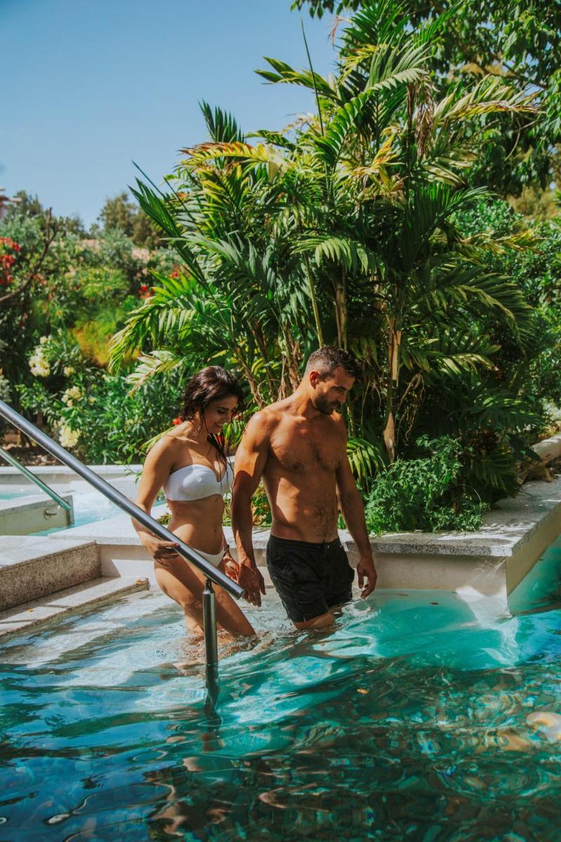 The “Elighes” spa spans over 5,000 m² and features hydrotherapy circuit, emotional showers, hammam, floating saline pool and a romantic lagoon with gazebo. A multi-sensory wellness journey to regenerate body and mind.