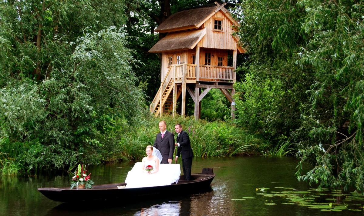 The resort consists of farmhouses and wooden chalets with traditional thatched roofs, furnished in an elegant-rustic style. Many accommodations are located along the private canals of the Spreewald River, offering direct access to the water and the possibility of taking traditional barge tours (Kahn) directly from the doorstep. The decor is warm, with exposed wood and high-quality fabrics.