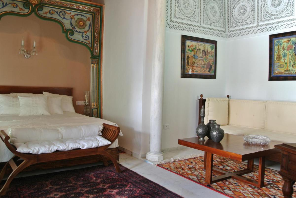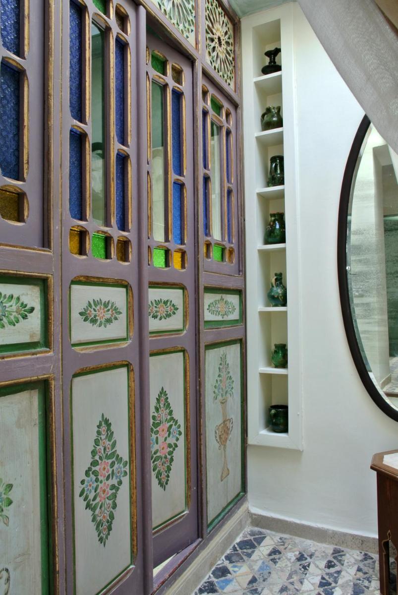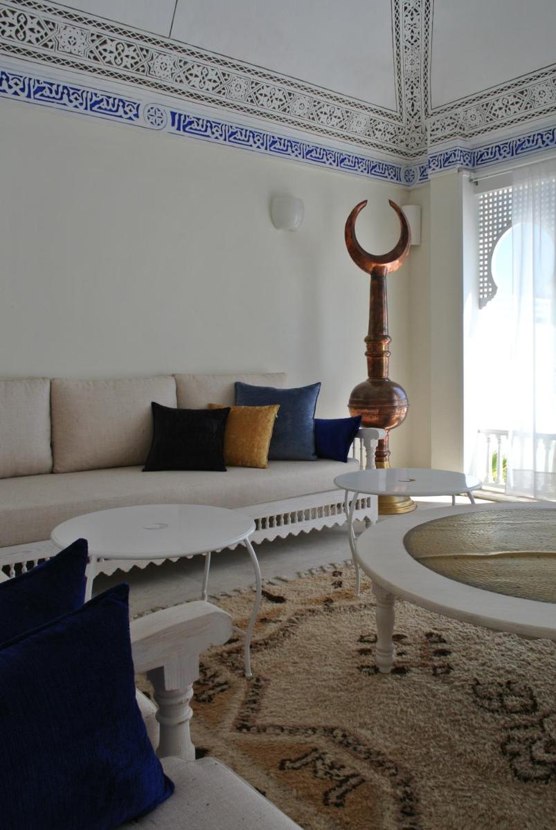 The Dar boasts a design that celebrates local craftsmanship. The rooms overlook an internal courtyard (Dour), typical of Medina architecture, decorated with colorful tiles, stucco, and carved wood. Each room is unique, furnished with antique pieces and local artwork, creating an intimate, historic, and visually rich atmosphere.