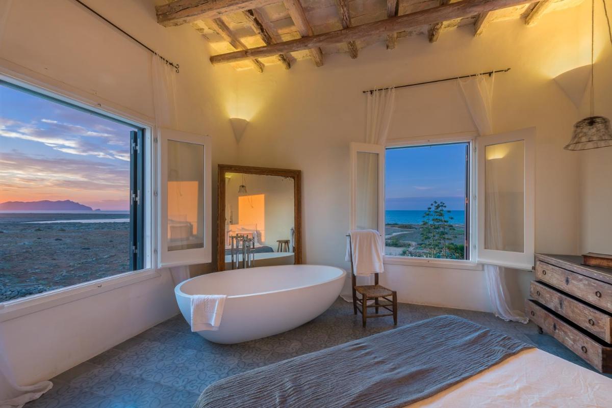 Sited in Favignana’s most unspoilt area, just 300 steps from rocky coves, the property exudes genuine Sicilian hospitality and ecological awareness.