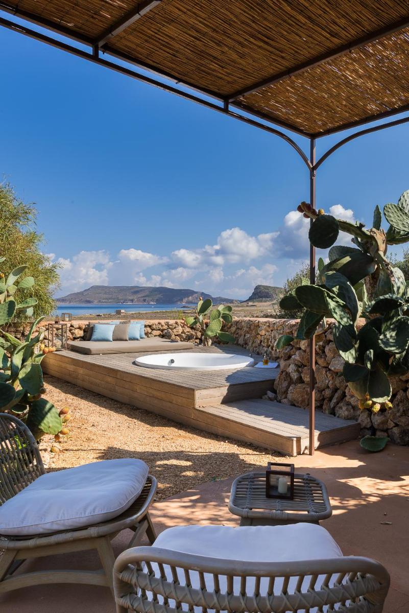 Dimora Cala del Pozzo is an exclusive boutique hotel set in a restored rural “baglio” from the mid‑1800s, perched just meters from the turquoise waters of Cala del Pozzo on Favignana’s wilder northwest coast.