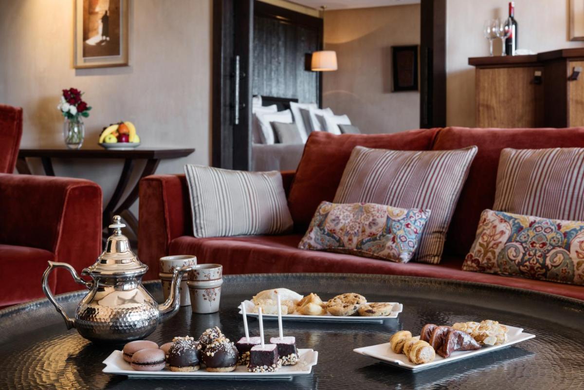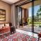 The suites and private villas are spacious, luxuriously appointed, and feature terraces or balconies with breathtaking views of the golf course and the Atlas Mountains. The interior design is a sophisticated blend of Moroccan craftsmanship and contemporary lines, ensuring maximum comfort and absolute privacy for all guests.