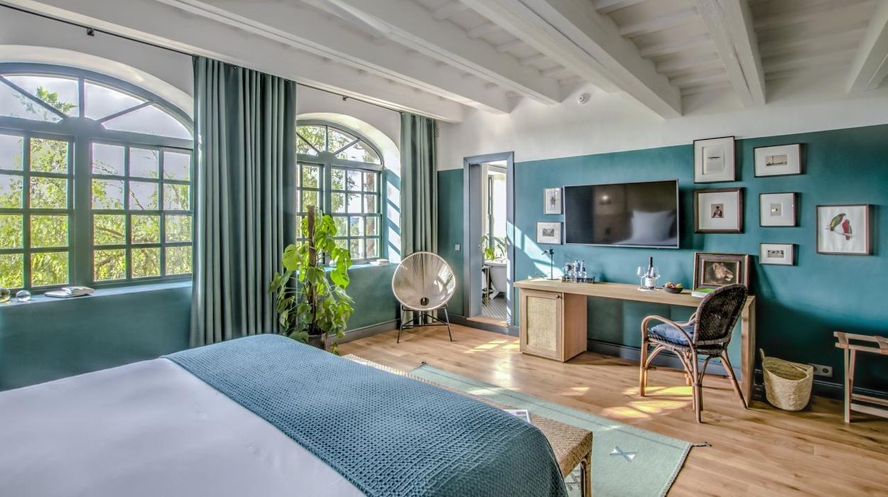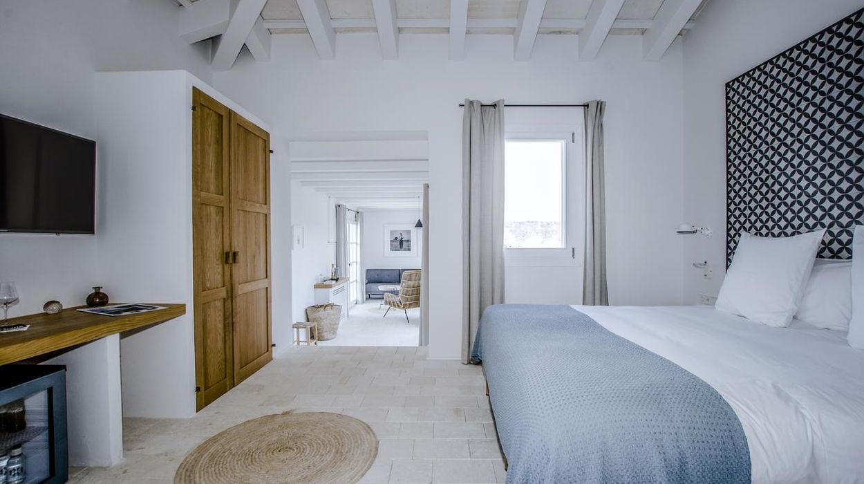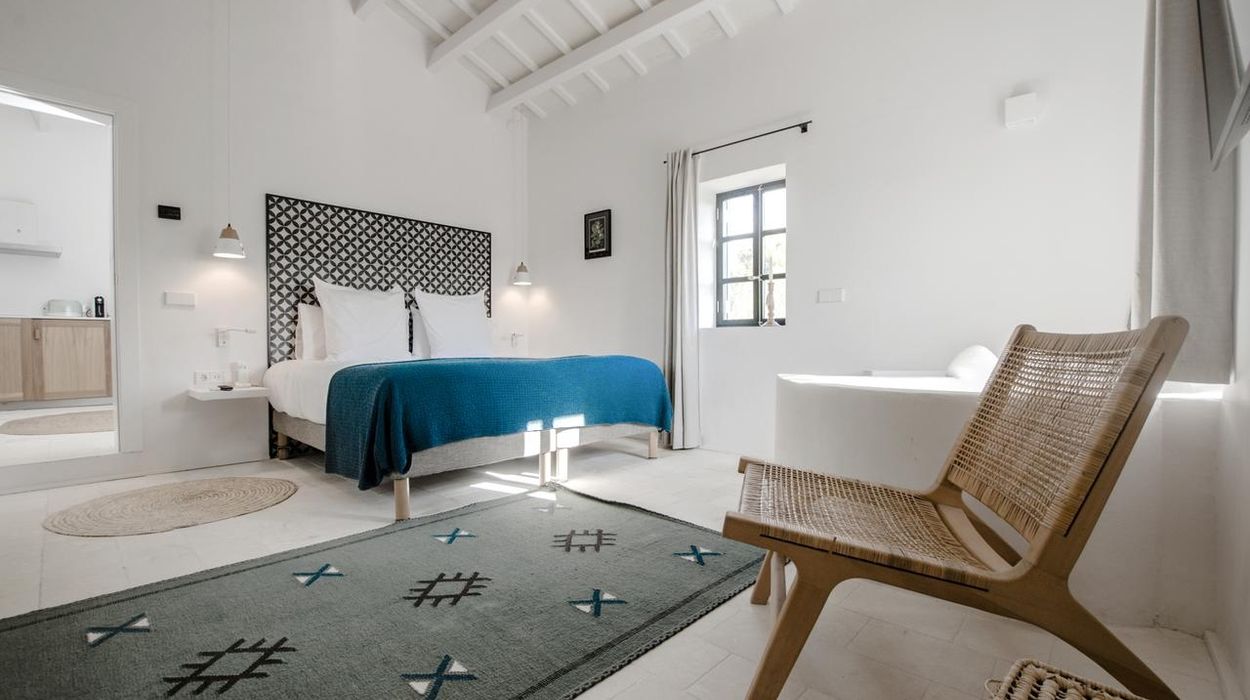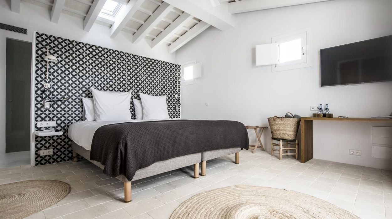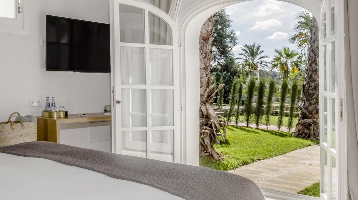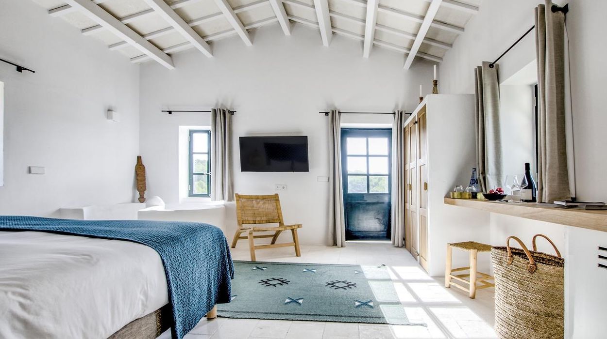The property offers 22 rooms and suites located in the main manor, converted barns, and separate casitas. Each room is uniquely designed, blending Minorcan stonework, Moorish details, and contemporary comfort, with amenities like AC, Wi‑Fi, minibar, and private terrace or balcony.