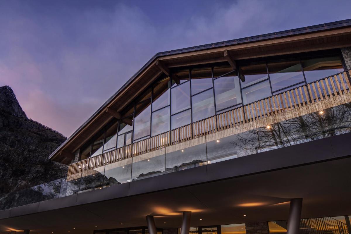 The Grand Hotel Courmayeur Mont Blanc is an exclusive 5-star property, located in a quiet and panoramic position, with direct views of the Mont Blanc Massif. The architecture, which combines traditional alpine style in wood and stone with a refined, contemporary design, makes it the ideal place for a luxury and wellness holiday, both in winter and summer.