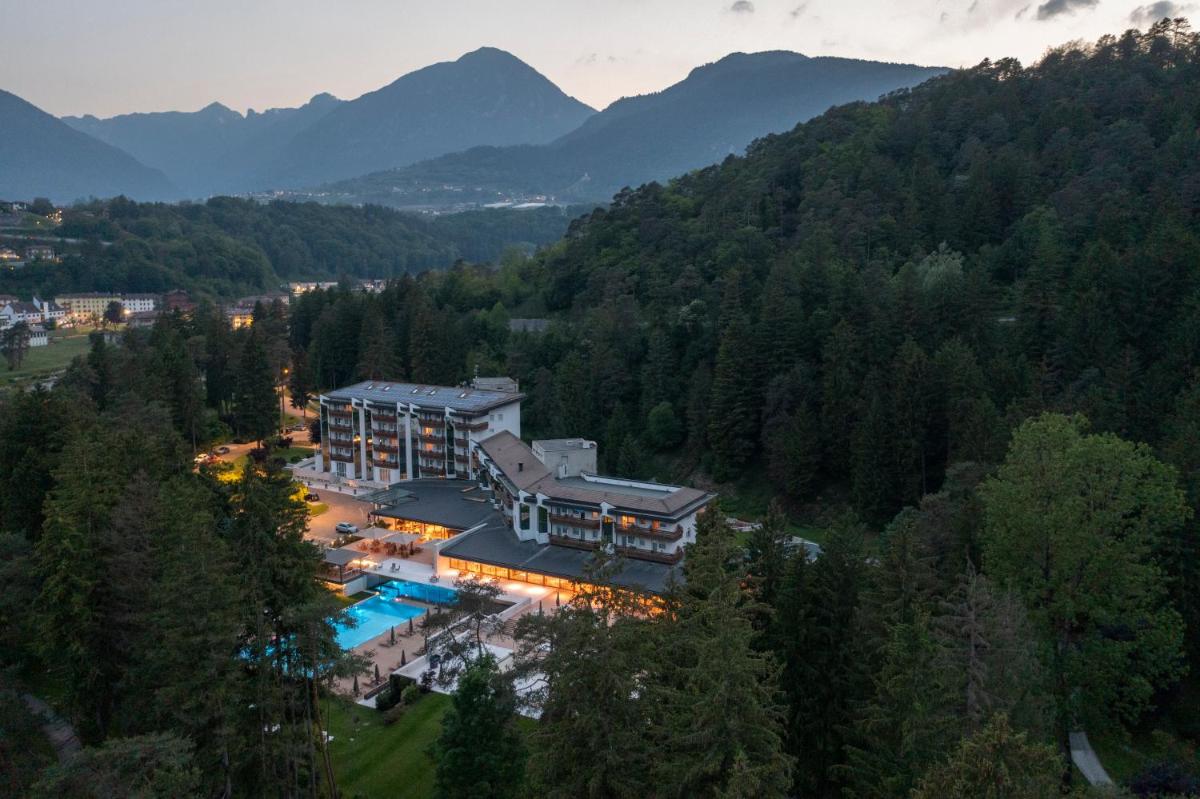 The Grand Hotel Terme Di Comano is an exclusive 4-star superior hotel located in the heart of the Brenta Dolomites, directly connected to the Terme di Comano thermal spa. The hotel is nestled in a vast 14-hectare park, offering an environment of peace and rejuvenation. It is renowned throughout Europe for the therapeutic properties of its thermal water, ideal for skin care and general well-being. The property is managed by the Giacomini family and offers elegant and professional hospitality.