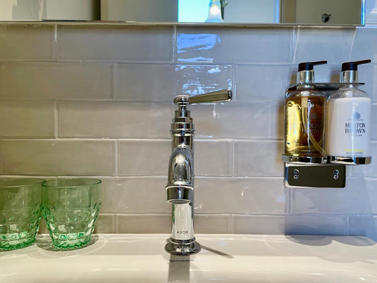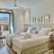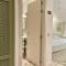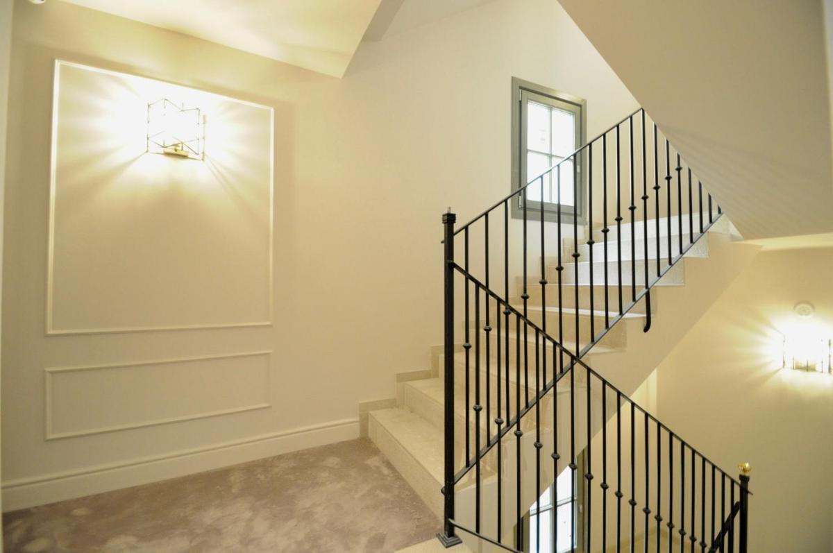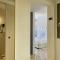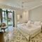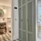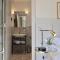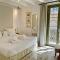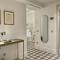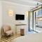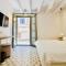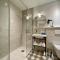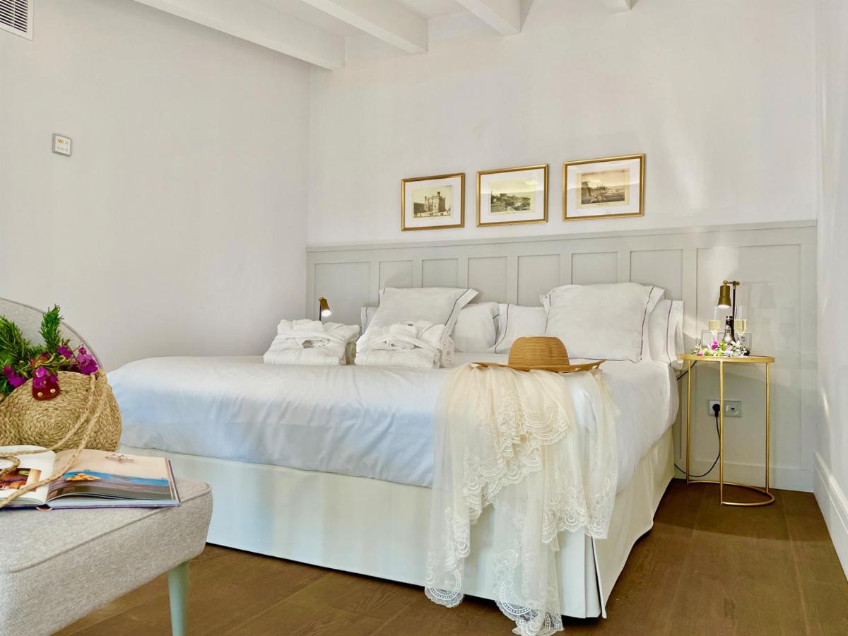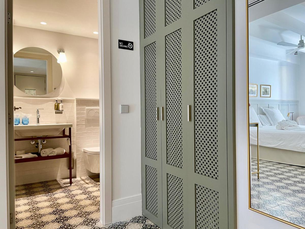 The stone building features classic architecture, but the interiors have been transformed with a contemporary, clean, and bright design. The use of natural materials, simple lines, and a neutral color palette creates an atmosphere of discreet luxury and quietude, a welcome contrast to the city's animation outside.