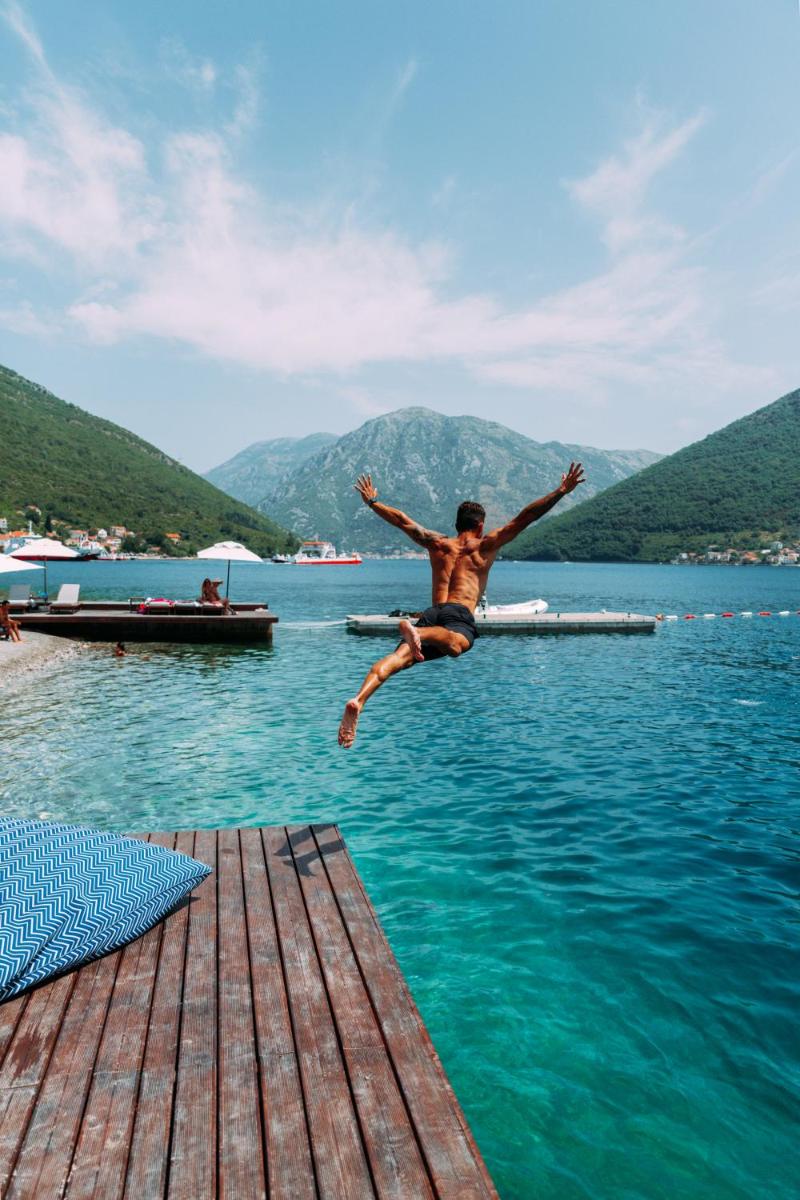 The location in Castelnuovo is perfect for sea and culture lovers. The hotel offers access to its equipped private beach. Furthermore, it is an excellent base for exploring nearby historic cities like Kotor and Perast, navigating through the crystalline waters of the bay, a UNESCO World Heritage site.