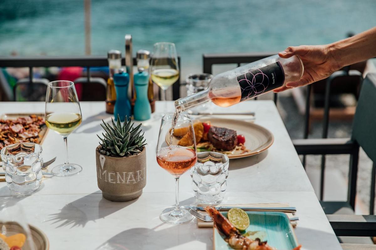 The hotel restaurant is renowned for its excellent Mediterranean and local cuisine, focused on fresh fish and regionally sourced ingredients. Dining on the terrace just meters from the sea, with the sound of the waves in the background, elevates every meal to a romantic and high-quality culinary experience.