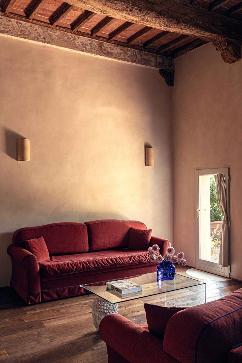 The Hotel Certosa Di Maggiano is an exclusive 4-star boutique hotel located in the Sienese countryside, just 2 km from Piazza del Campo. This ancient Charterhouse (Certosa), founded in 1316, was transformed into a luxury retreat in the 1960s by the architect and set designer Renzo Mongiardino. His vision created an eclectic and fascinating environment, where the historical atmosphere of the monastery blends with a vibrant and sophisticated design, making the hotel a sanctuary of Tuscan elegance.