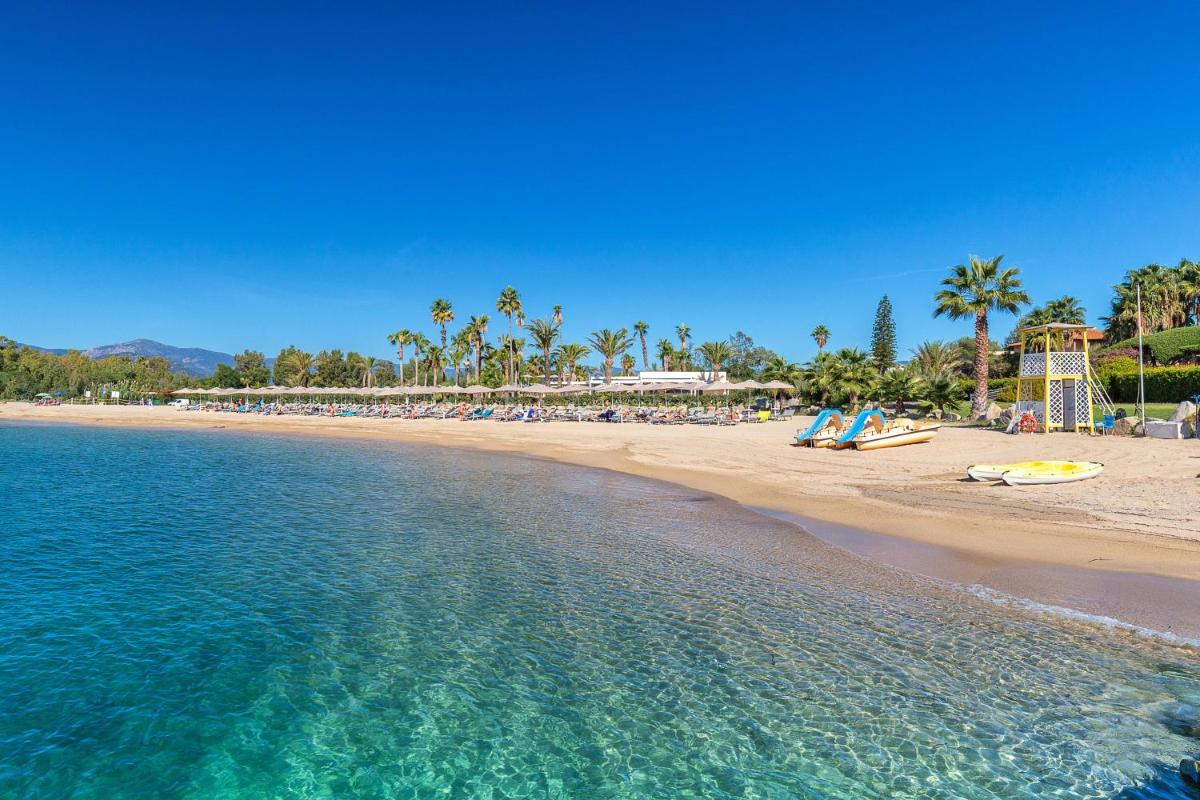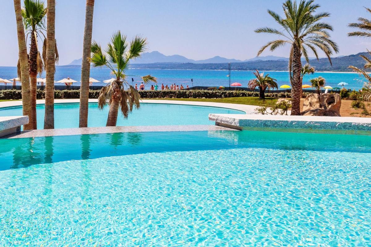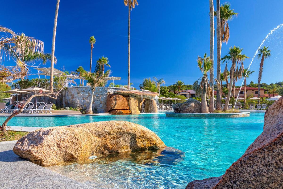 The approximately 150 rooms and suites (including Family Rooms and Deluxe Sea View) are furnished in a Sardinian-Mediterranean style and equipped with Air Conditioning, Mini-fridge, and Free Wi-Fi. Most feature a comfortable Patio or Balcony. For fun and relaxation, the resort boasts two Outdoor Pools: a semi-Olympic one and a newer, scenic pool (1400 sqm) with seawater and water games, plus dedicated children's areas.