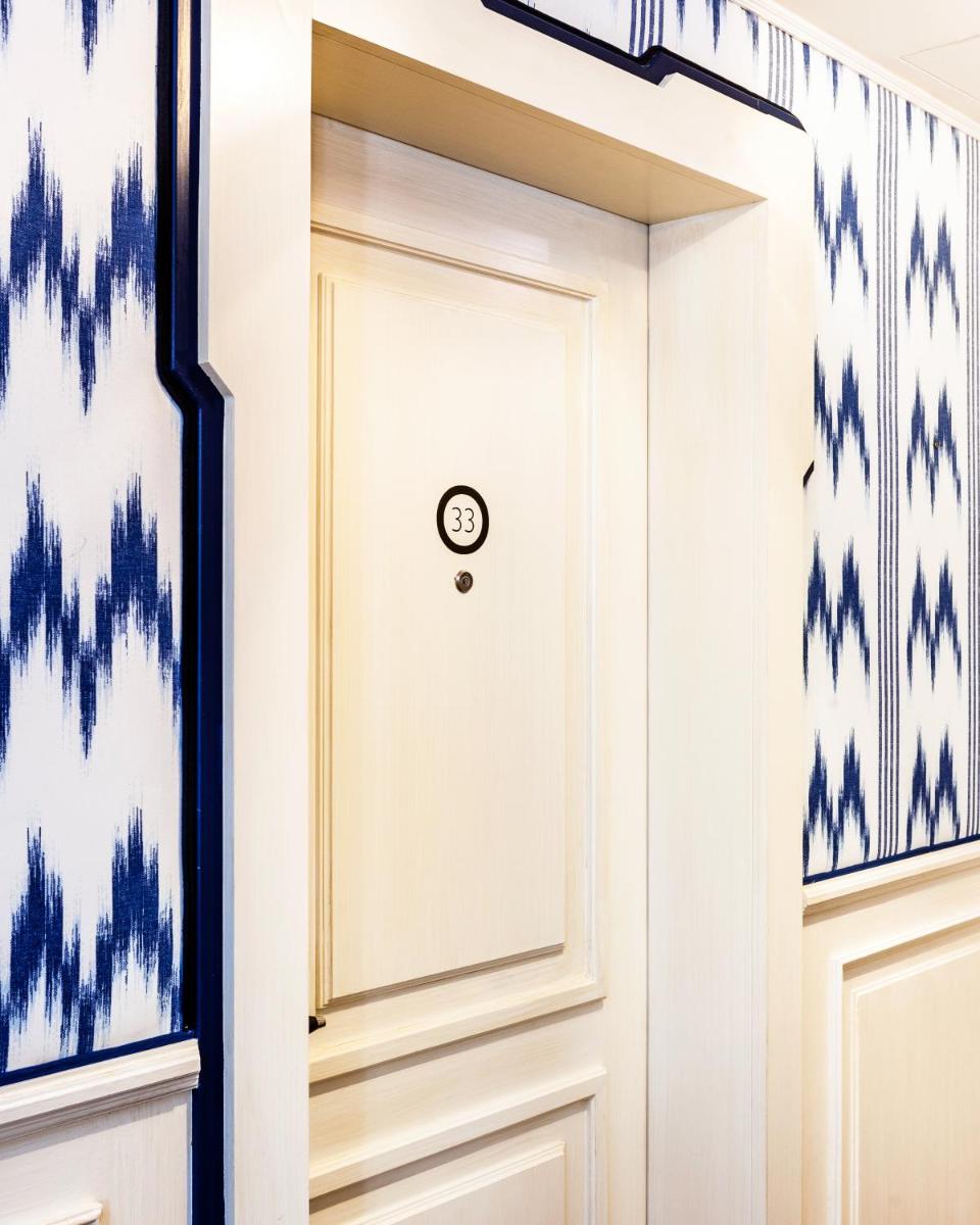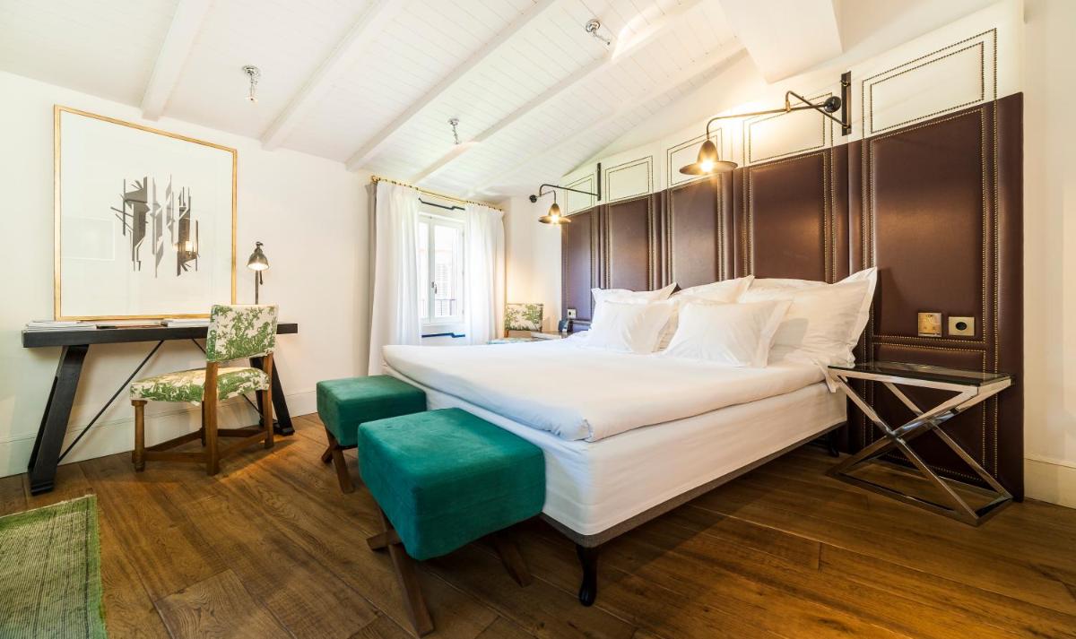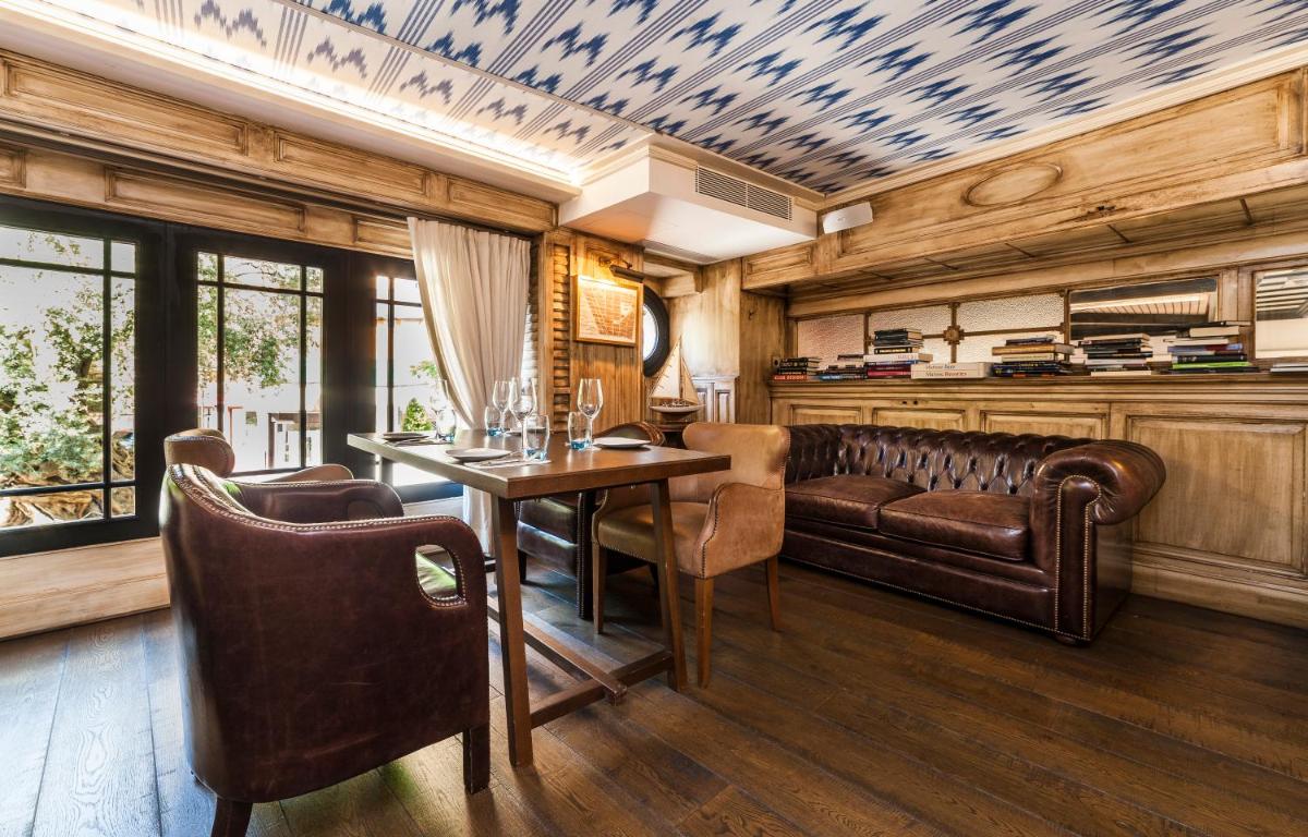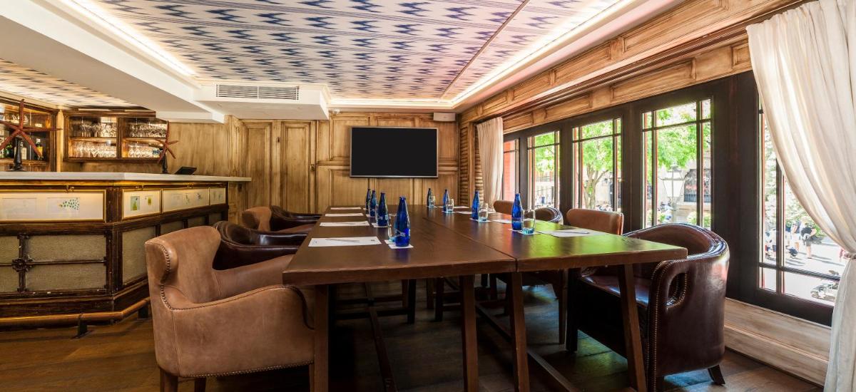 The interior design is the work of Lázaro Rosa-Violán and celebrates naval tradition and the colours of the Mediterranean. The hotel is a triumph of dark wood, blue tones, natural fabrics, and unique art objects. The pulsating heart is the large bar/restaurant counter, which directly overlooks the square, offering a vibrant and cosmopolitan space.
