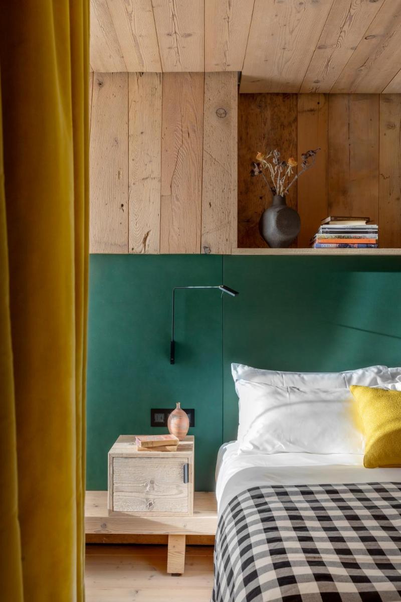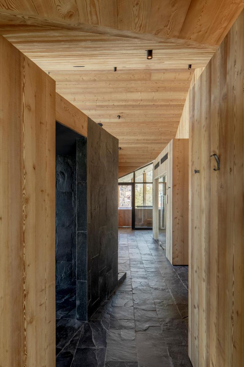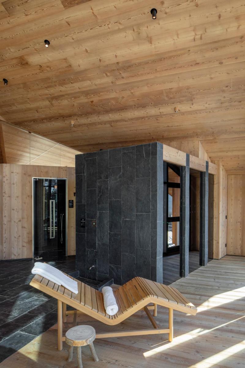 The rooms are designed following biophilic principles to ensure an unparalleled rest. An exclusive feature is the integration of systems that reduce electromagnetic and acoustic pollution, creating a regenerative microclimate. The clever use of Swiss pine, known for its relaxing effects on heart rate, transforms every suite into a natural wellness cell.