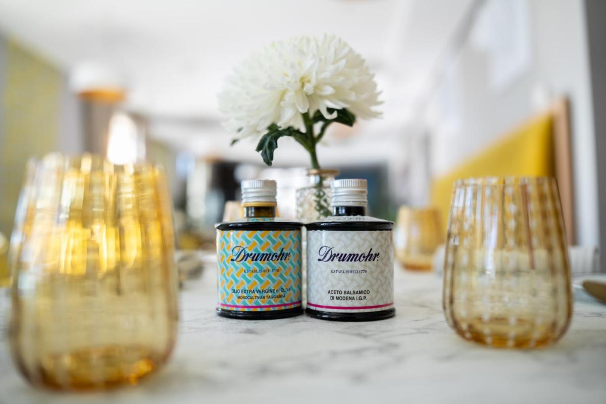 The 61 accommodations, including Rooms and Suites, are finely furnished with a clean and contemporary design. All are Soundproofed, air-conditioned, and equipped with High-Quality Bedding, high-definition TV, minibar, and coffee machine. Many rooms offer a spectacular Sea View, and some types (such as the Terrace Deluxe) feature a Private Terrace. Suites include additional comforts such as whirlpool tubs and dedicated living areas. Family Rooms and cots (free) are also available upon request.