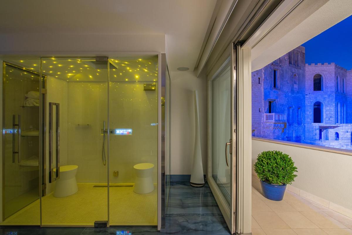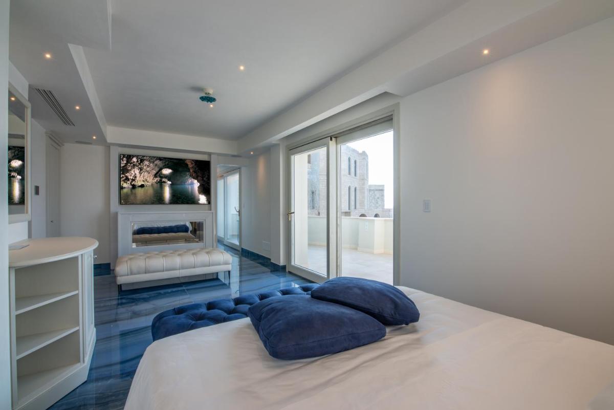 This suite offers a fireplace. Providing free toiletries and bathrobes, this suite includes a private bathroom with a walk-in shower, a bidet and a hairdryer. The air-conditioned suite provides a flat-screen TV with cable channels, soundproof walls, a mini-bar, a seating area as well as sea views. The unit offers 1 bed.