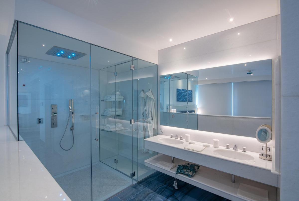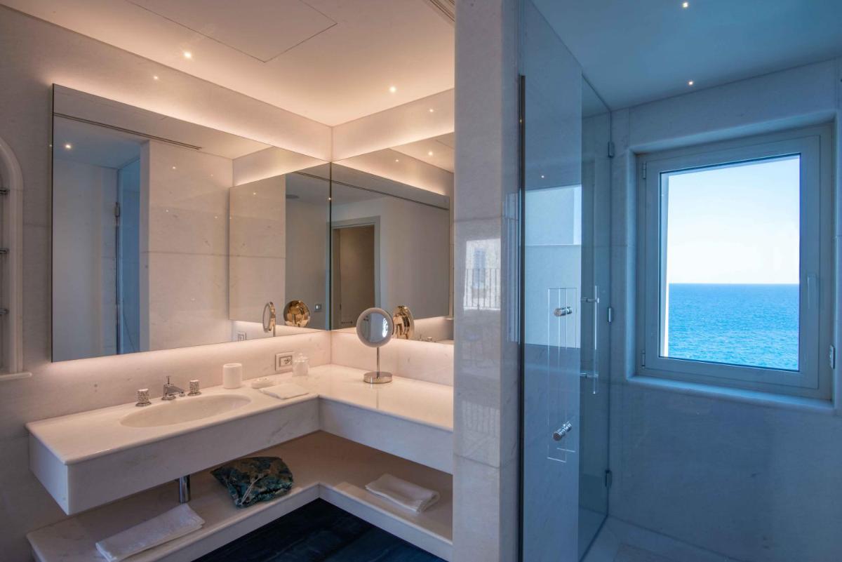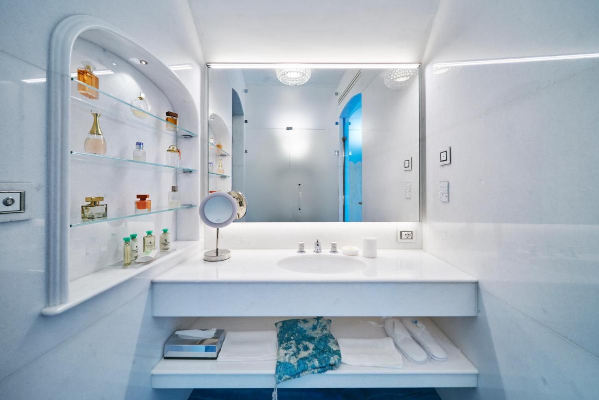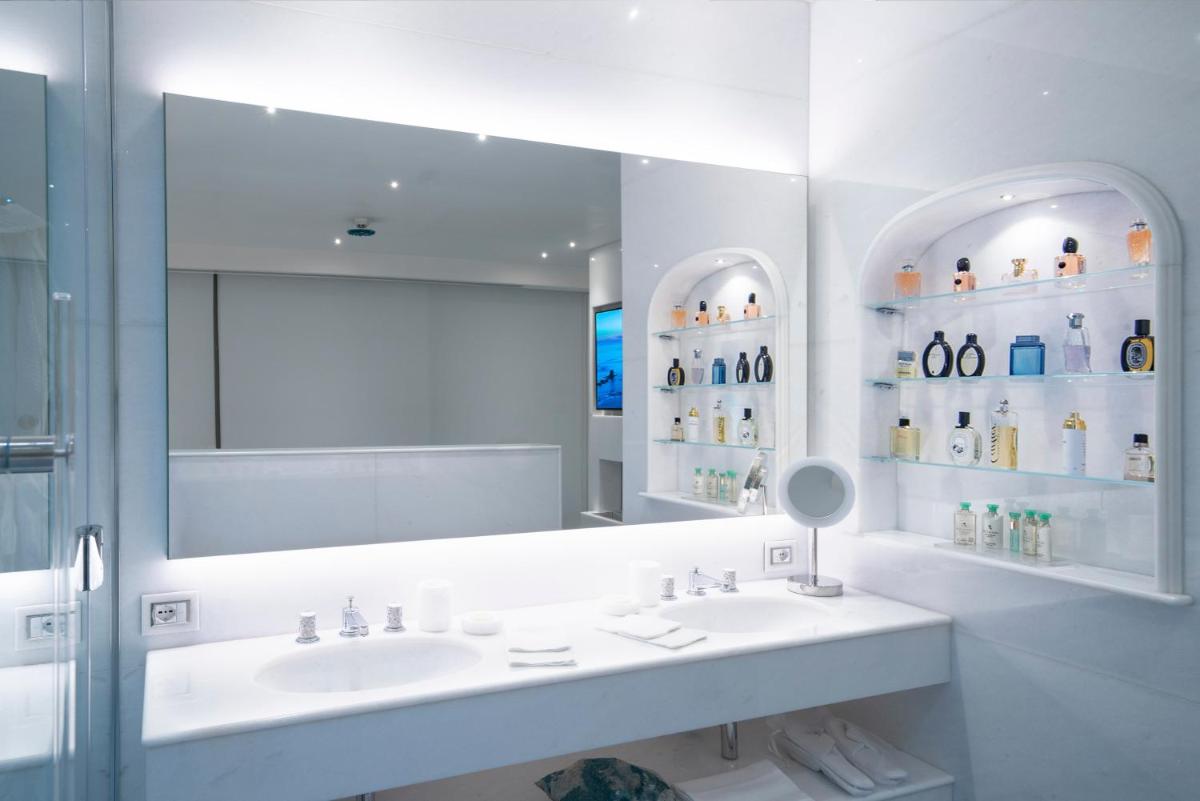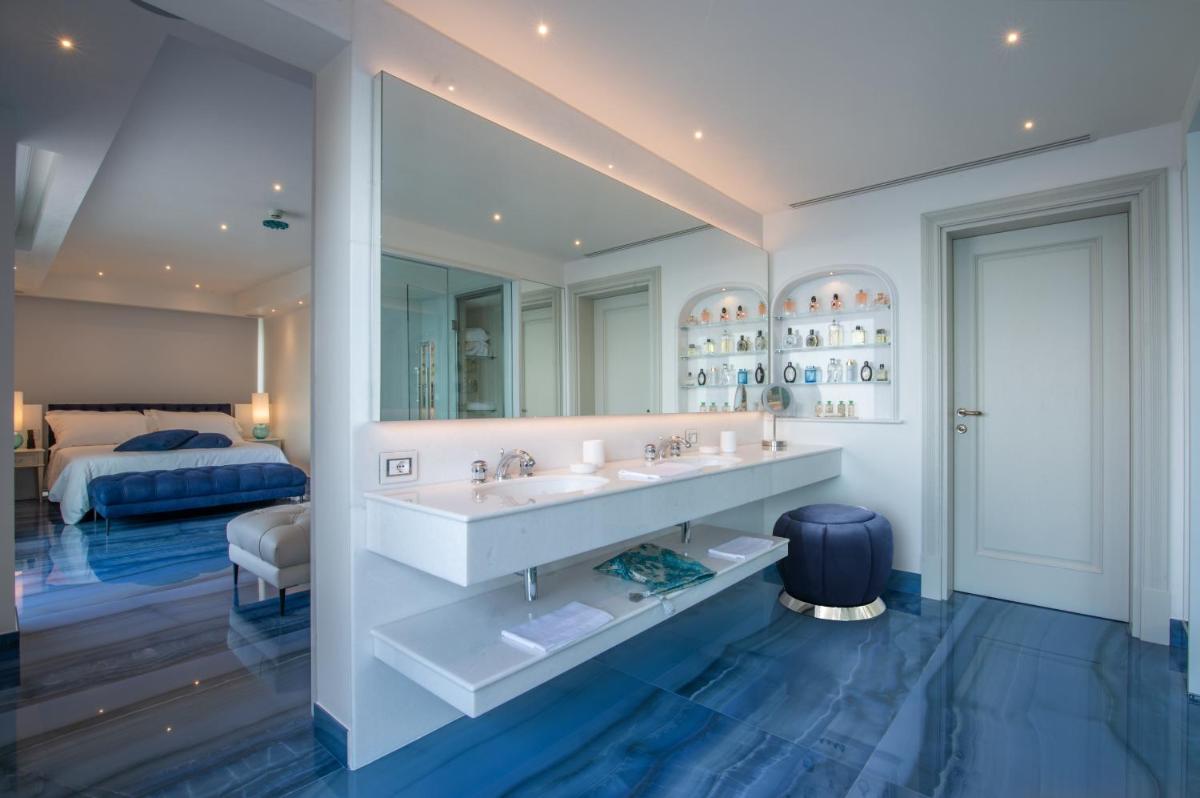 The hotel offers rooms and suites that combine refined elegance with a Mediterranean-style design, featuring luxury furnishings and careful details. The accommodations are designed to guarantee maximum relaxation, nestled in lush vegetation or directly overlooking the coast. Many rooms and all Suites boast balconies or patios with a sublime sea view. Standard amenities include: free WiFi, air conditioning, minibar, and marble bathrooms with complimentary toiletries.
