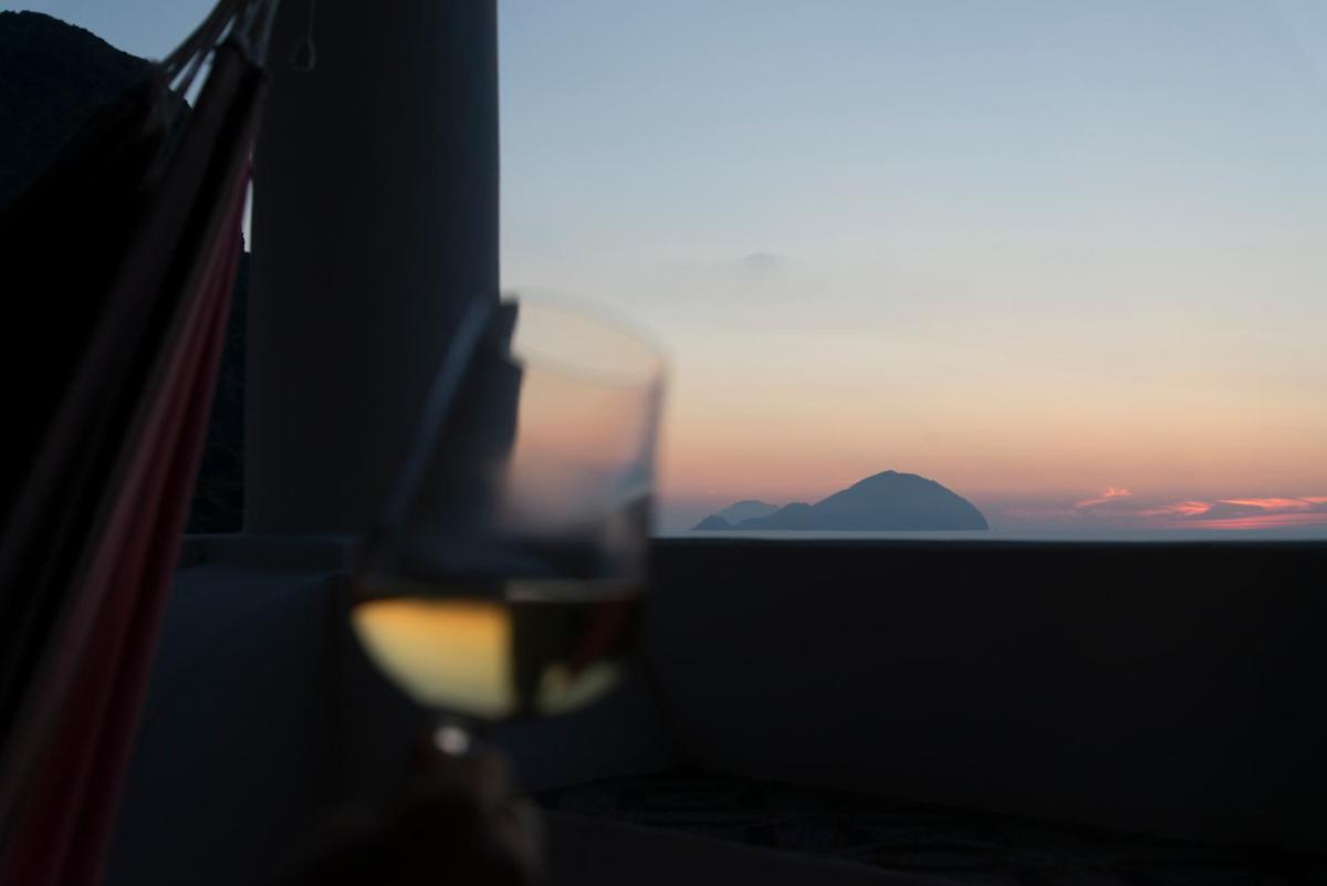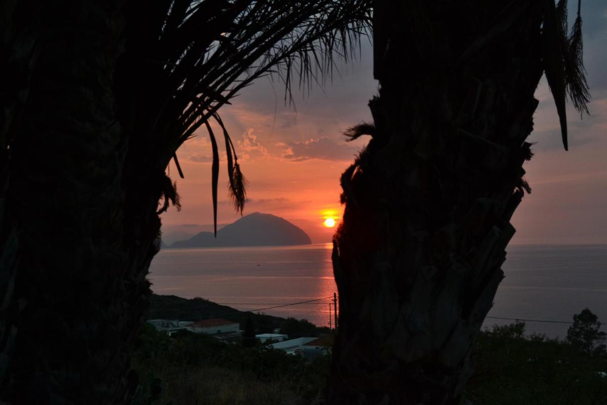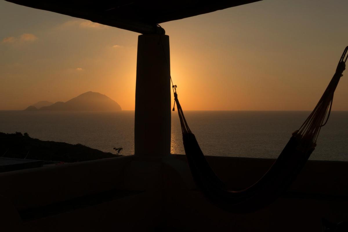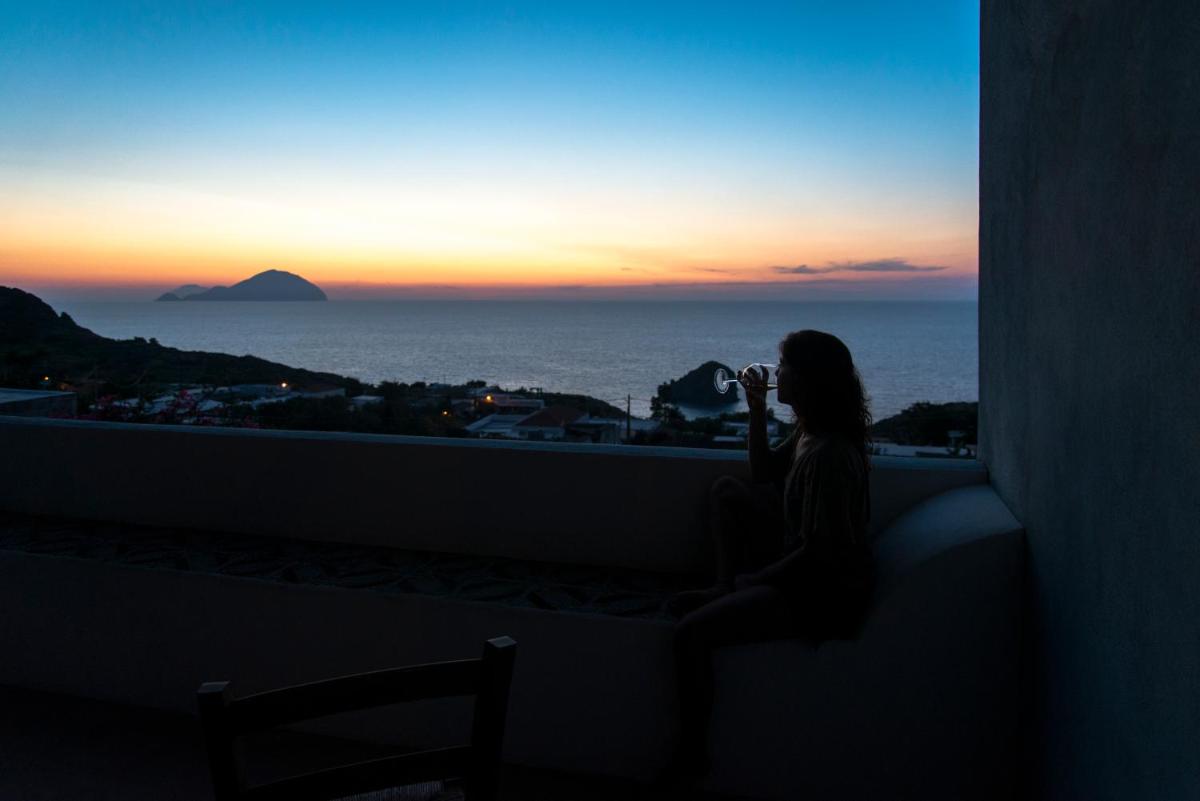 Each evening the sun slips behind Alicudi and Filicudi—an Aeolian aperitivo moment before returning to the Locanda's quiet.