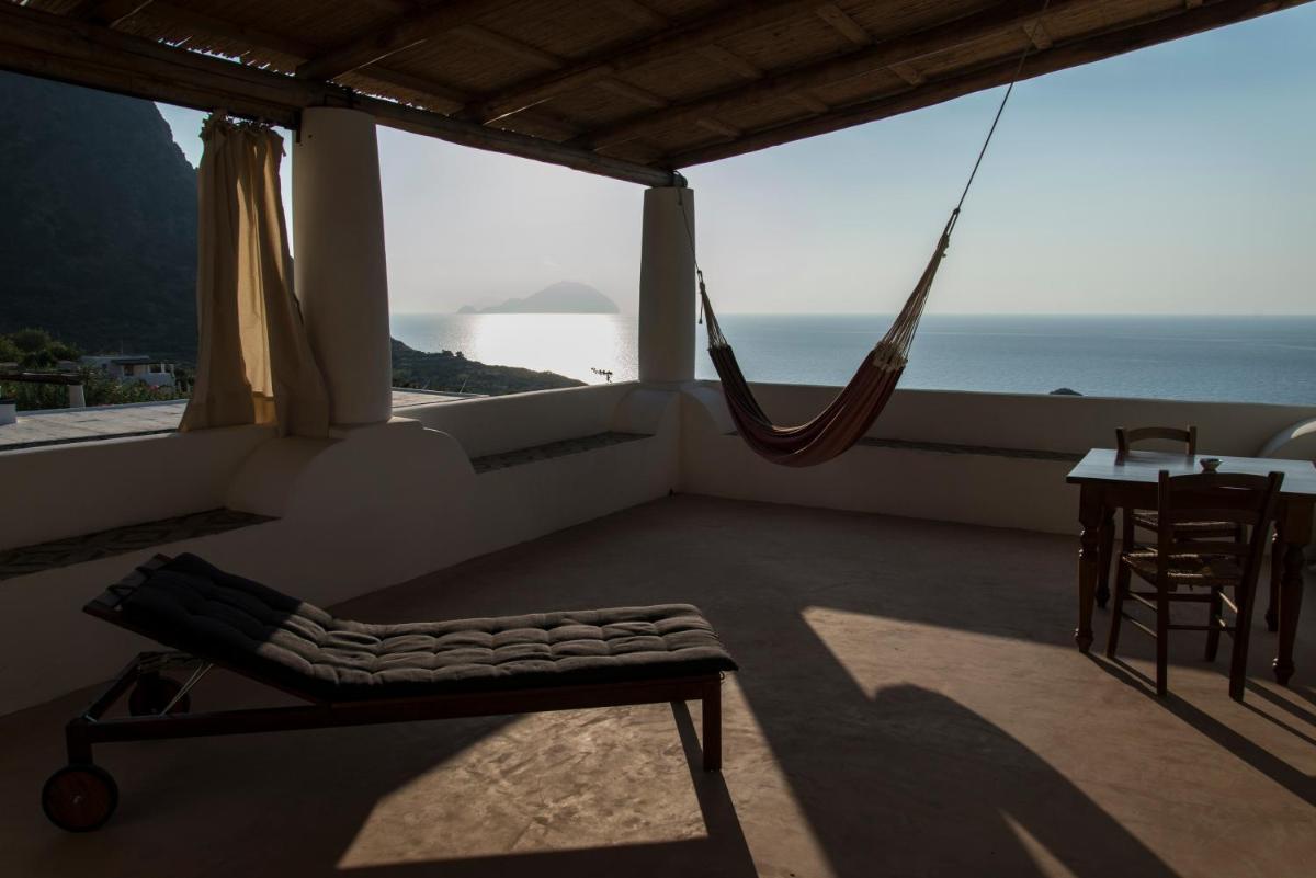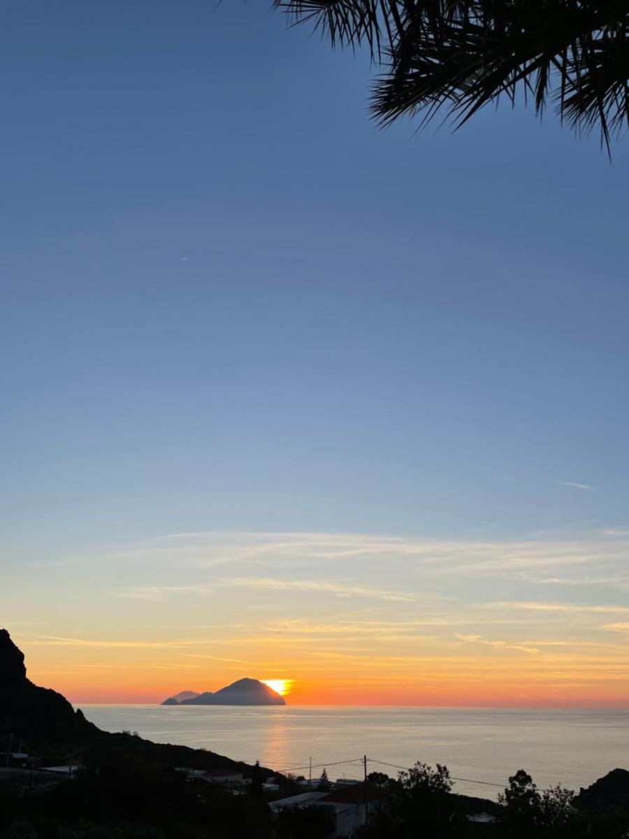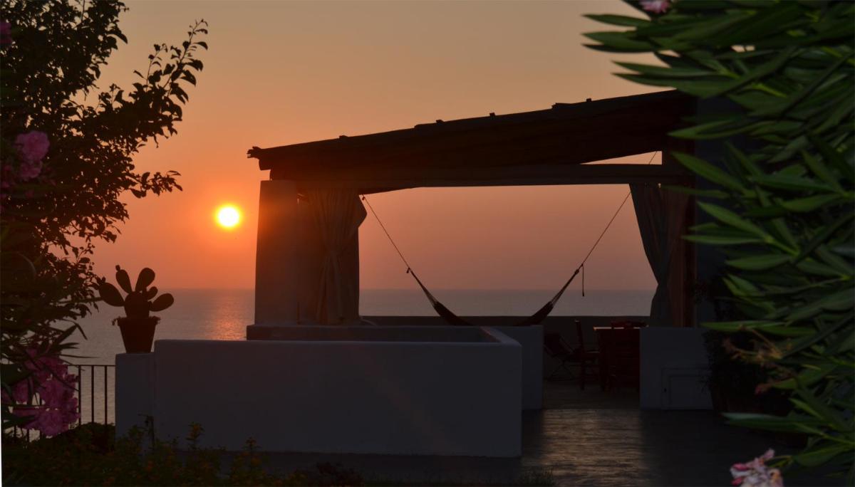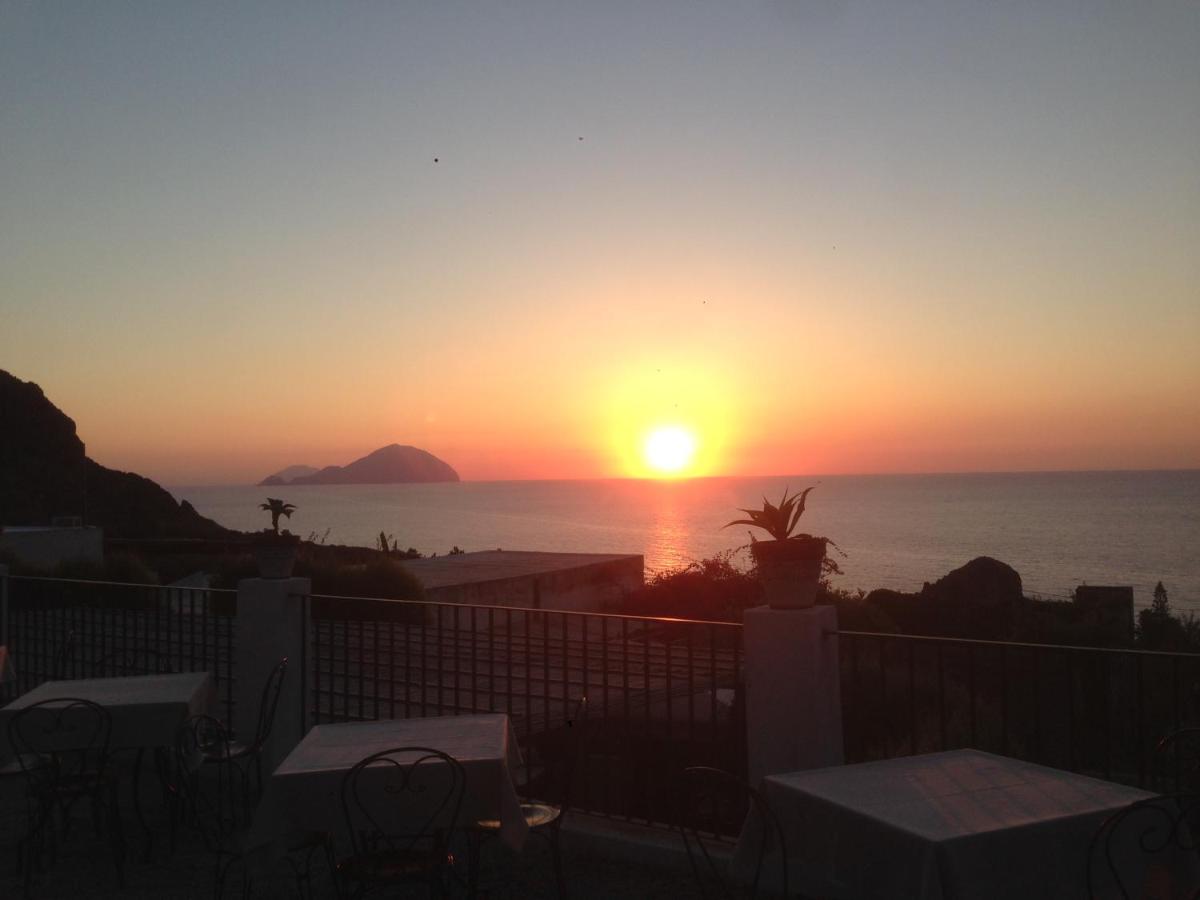 Each evening the sun slips behind Alicudi and Filicudi—an Aeolian aperitivo moment before returning to the Locanda's quiet.