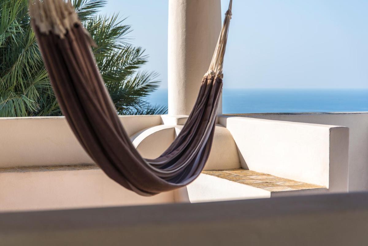 Whitewashed lines, Aeolian tiles and natural materials shape bright rooms with balconies or patios. Contemporary comforts—air‑conditioning, Wi‑Fi, smart TV, minibar and safe—and crisp bathrooms. Windows frame cliffs and golden sunsets.