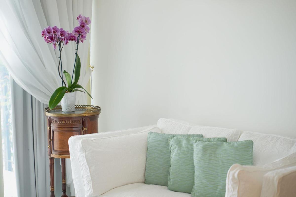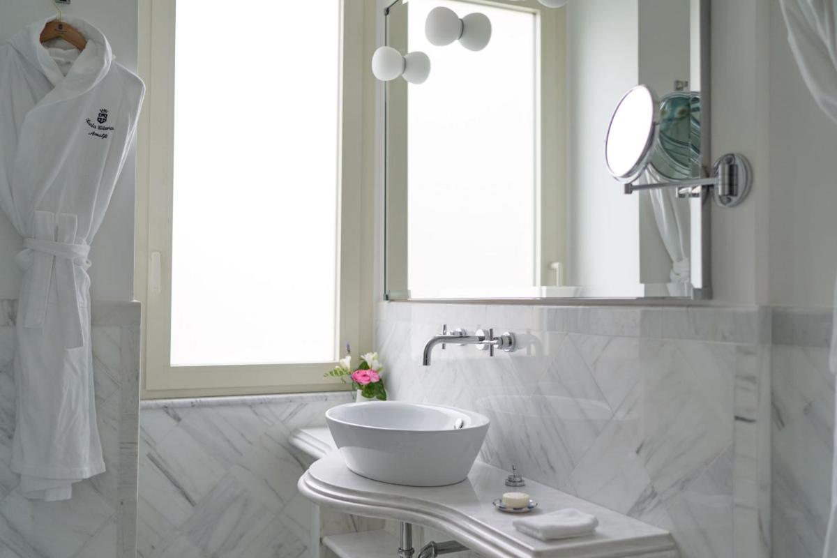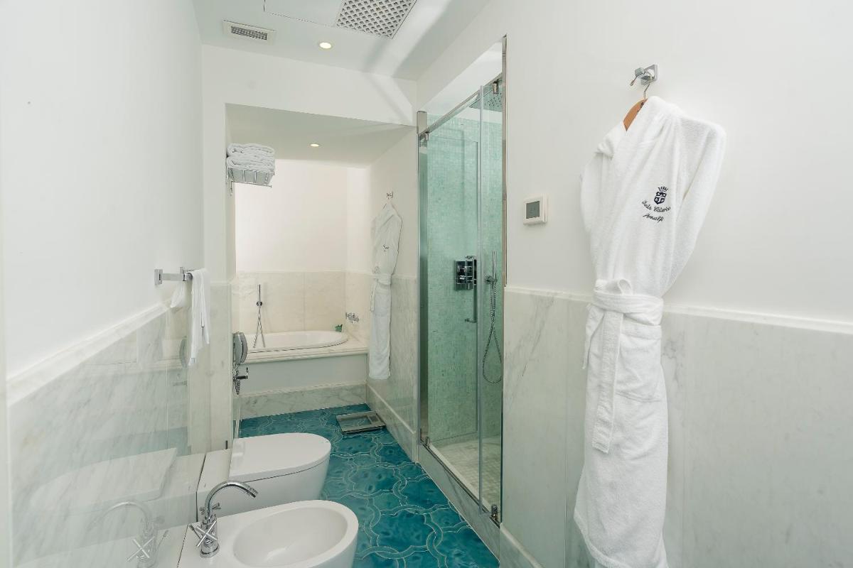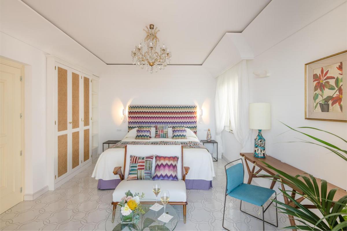 The 66 rooms and suites, all different and furnished with refined elegance, feature floors in hand-painted Vietri majolica tiles, marble bathrooms, and balconies or terraces with sea views or views of the lush gardens. The luxurious Special Suites, such as 'Romeo and Giulietta', offer exclusive comforts including a private heated infinity pool or a circular mini-whirlpool. Many standard accommodations include a whirlpool tub.