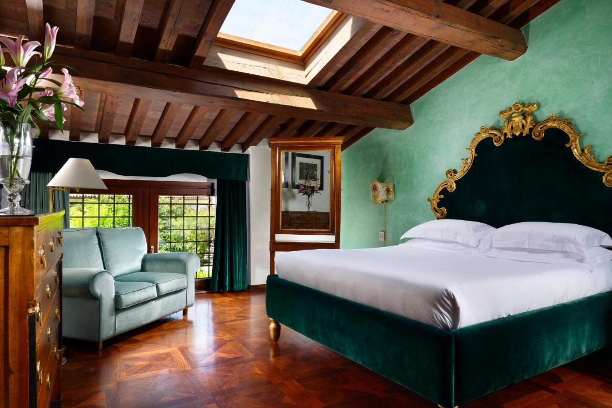 The rooms and suites are furnished with period pieces and elegant details, creating a refined and welcoming atmosphere. Many overlook the park and surrounding vineyards, offering enchanting views.