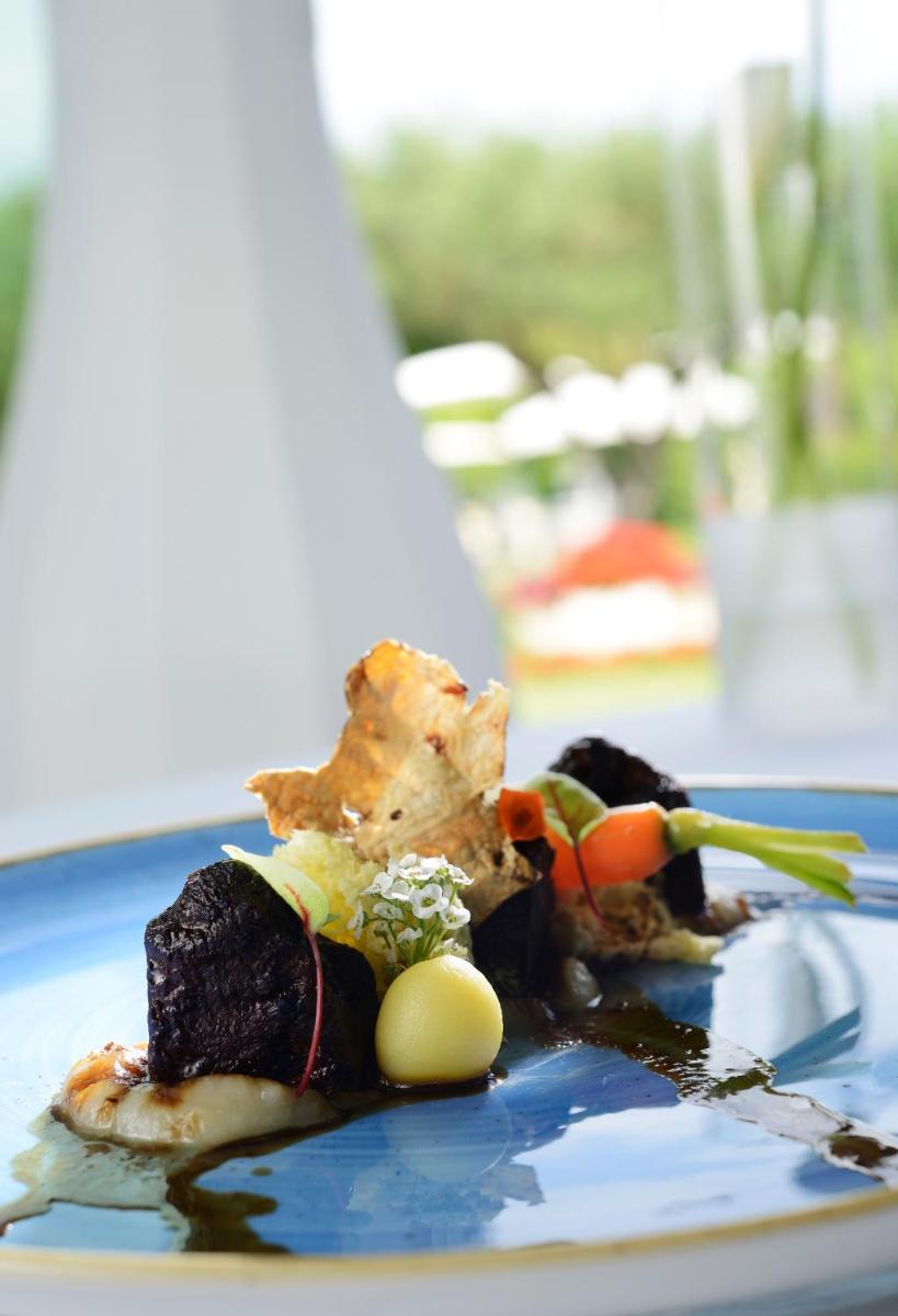 The restaurant serves cuisine inspired by Venetian and Mediterranean traditions, prepared with high-quality ingredients. The villa also houses a historic wine cellar with prestigious Amarone and Valpolicella labels.