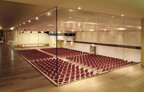 The structure is an important Congress Center and event venue. It features 20 elegantly furnished and versatile meeting rooms, capable of hosting meetings, banquets, and gala dinners. The magnificent Sala delle Muse can accommodate over one thousand people for large-scale events. The Terrazzo Mediterraneo, restored to its original beauty, offers a panoramic view of the park and is perfect for summer receptions.