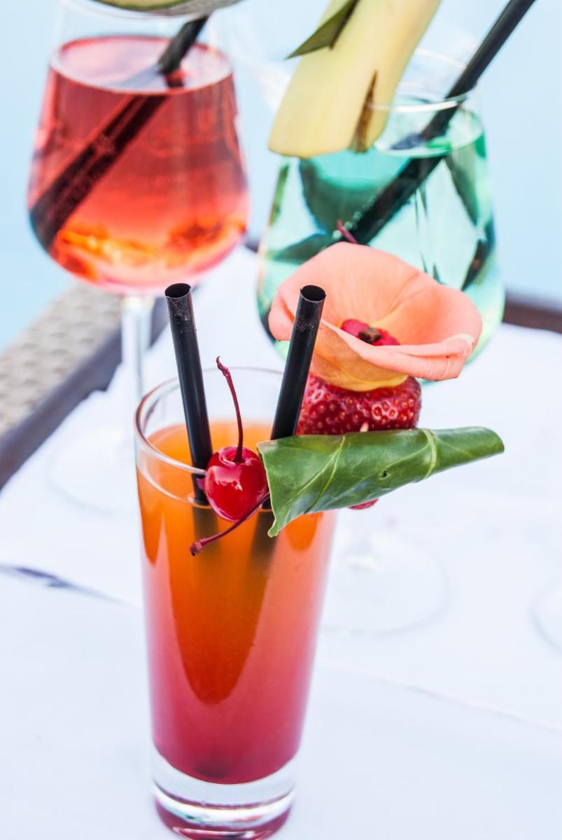 Guests can enjoy a saline outdoor pool and indoor spa with thermal-rock grotto, sauna, steam room, hydro‑massage pool, hammam, and fitness centre. Indoor-spa access is sometimes subject to extra charge.