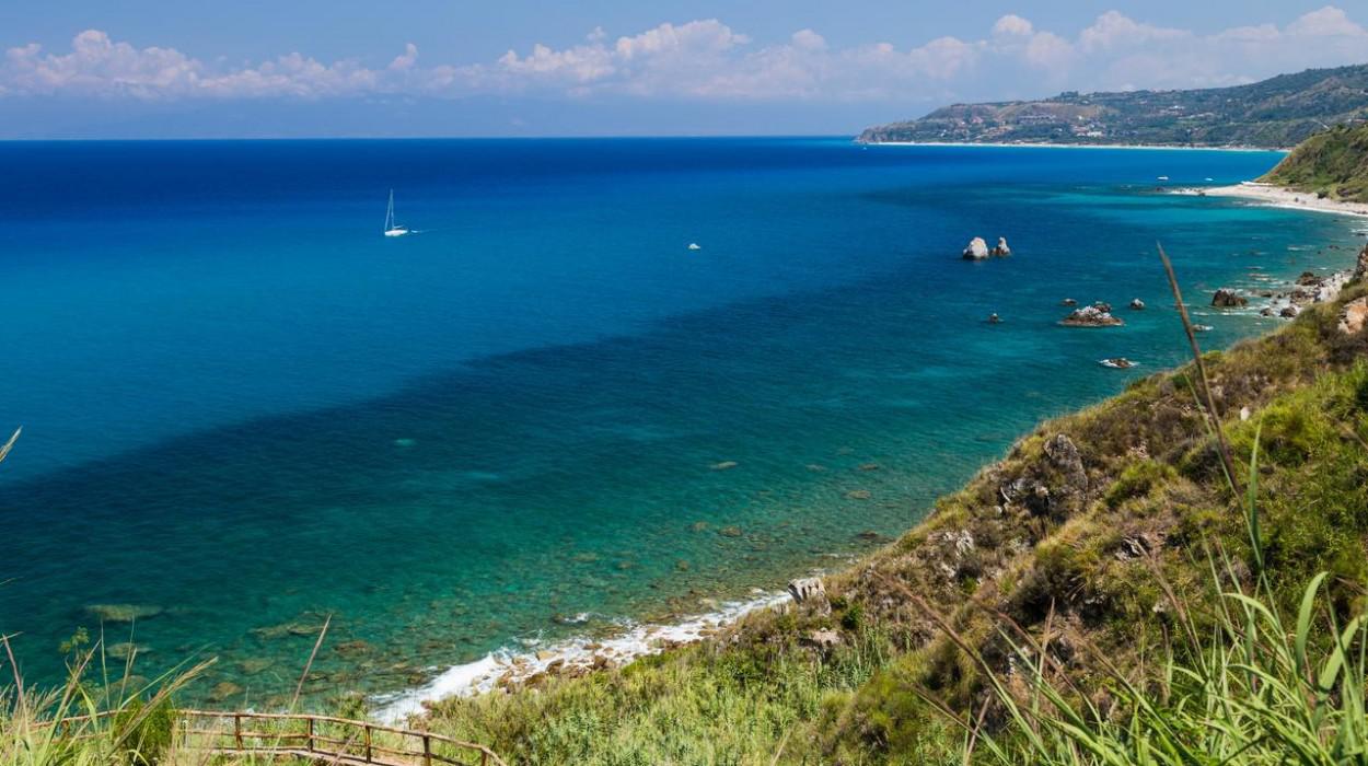 Per scendere al mare c'è un sentiero in discesa, un po' accidentato (dovrebbe essere perfezionato completando i gradini e la lastricatura nelle parti in terra battuta) ma vale la pena. Già durante la discesa si può ammirare la bellezza della baia. Il mare di Parghelia è meraviglioso, con colori tropicali e un'acqua cristallina. la "spiaggia privata", molto selvaggia, in realtà è fatta di scogli e rocce, ma servita di ogni confort con doccia, ombrelloni, sdraio e lettini dislocati nel prato degradante e nella piattaforma di legno posizionata sopra gli scogli e i sassi vicino al mare e servita da una persona gentile e disponibile. L'accesso al mare è un po' difficile e pericoloso per la presenza degli scogli e dei sassi, ma una volta dentro si possono dimenticare anche le ammaccature da scivolamento...Con il mare calmo, normalmente viene utilizzata una piattaforma galleggiante, munita di scaletta, che facilita enormemente il bagno in mare. (speriamo comunque che siano possibili dei miglioramenti per evitare cadute)