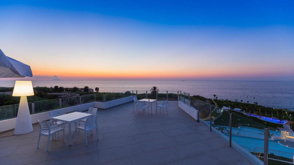 The Infinity Resort Tropea is an elegant 4-star resort located on a picturesque headland in Parghelia, a short distance from the famous Tropea. Its cliffside location offers a unique sensation: that of being aboard a ship setting sail towards the infinite horizon, from which its name derives. With 52 rooms and suites, the resort is the ideal retreat for those seeking a luxury experience, tranquility, and a breathtaking view of the Tyrrhenian Sea, with the profile of Stromboli on the horizon. The structure is nestled in the pristine nature typical of the Coast of the Gods.