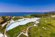 The heart of the resort is the enchanting panoramic infinity pool equipped with hydromassage stations, which seems to merge directly with the blue of the sea below. Around the pool, guests find a spacious sun deck equipped with loungers and umbrellas. A path immersed in vegetation, consisting of a panoramic staircase, leads directly to the resort’s private cove, an exclusive pebble beach where sunbeds and umbrellas are available, with crystal-clear waters ideal for snorkeling.