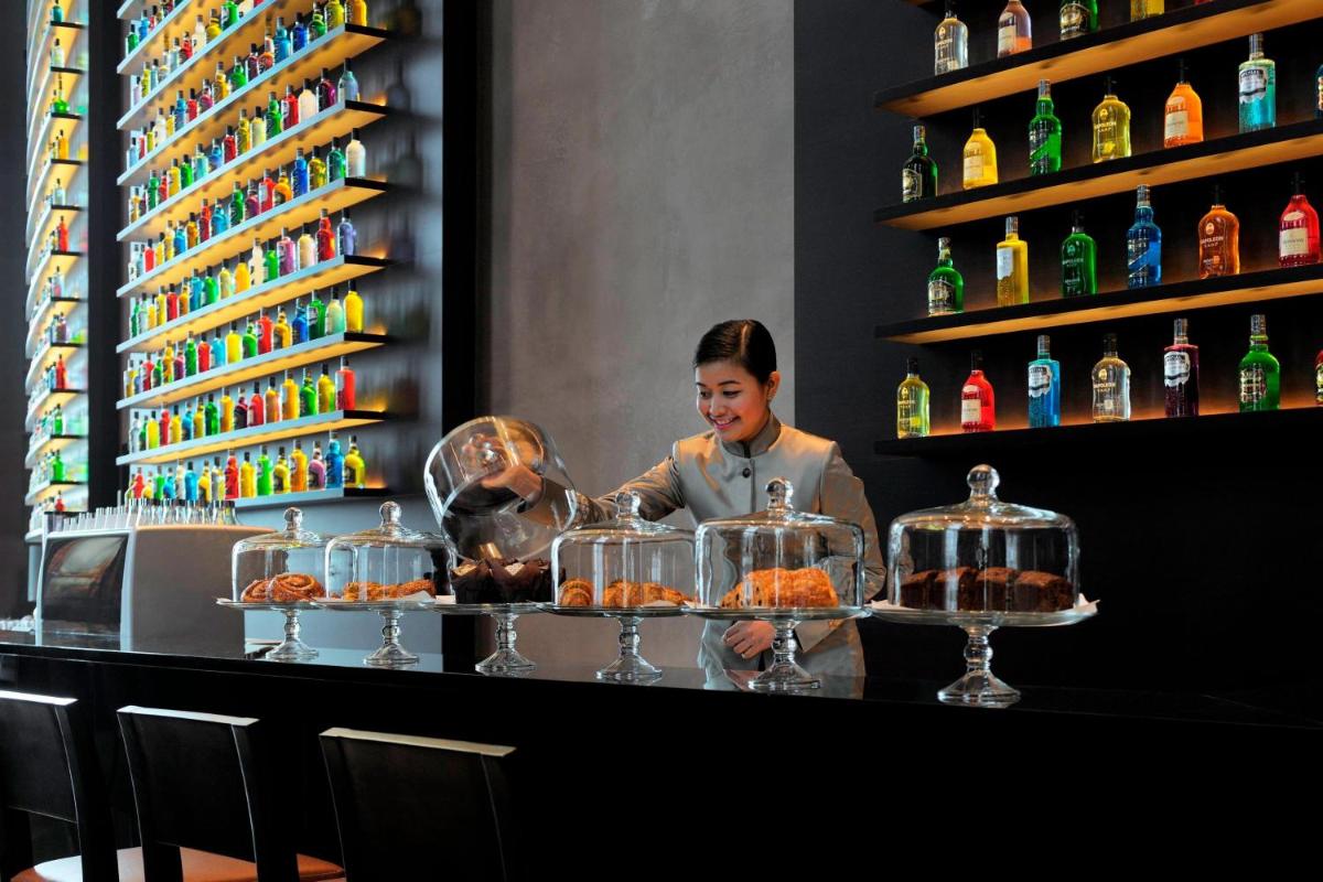 The Marriott Marquis is a true gastronomic destination, housing over 15 world-renowned restaurants and bars. Guests can embark on a global culinary journey, ranging from the fine Indian cuisine of Rang Mahal, to Thai flavors and refined Italian dining. This vast selection ensures every palate is satisfied, also offering rooftop dining experiences with spectacular views.