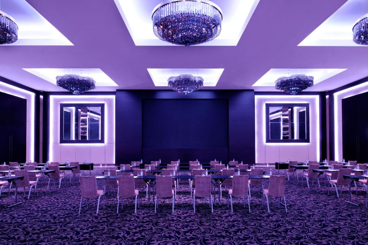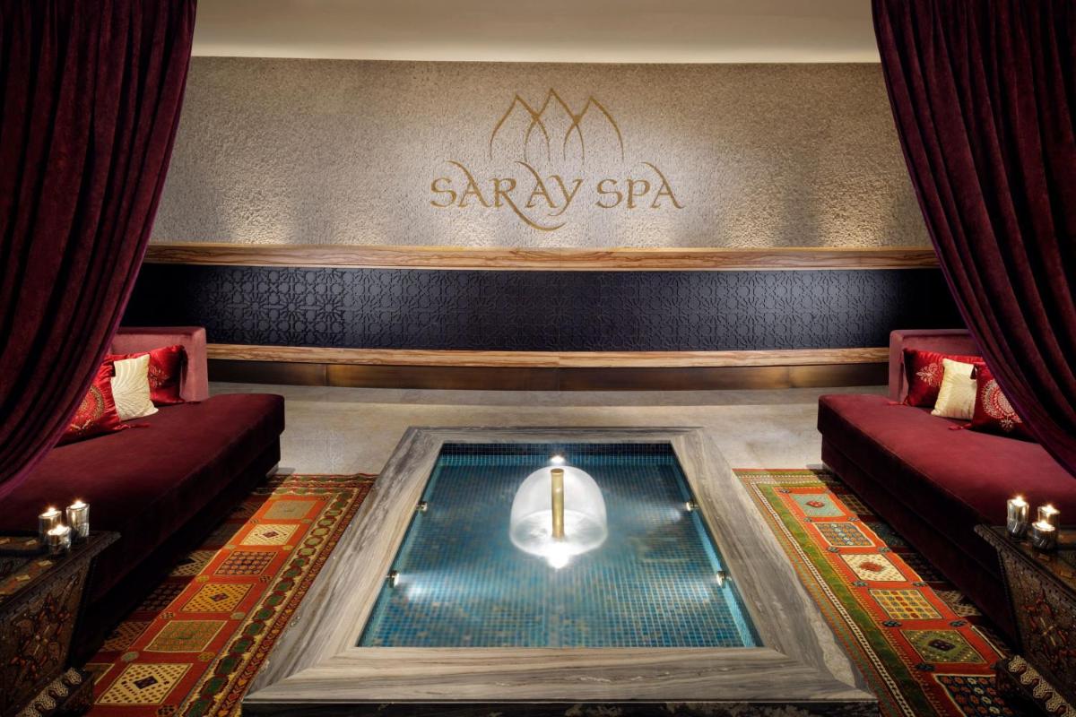 The Saray Spa is a 4,000 sq m sanctuary that draws inspiration from the ancient healing traditions of the Silk Road. It offers a wide range of treatments, hammams, saunas, and an environment of peace. Outside, the swimming pool is a focal point for relaxation, surrounded by sun terraces that provide a unique view of the surrounding vertical architecture, an oasis in the concrete and glass desert.