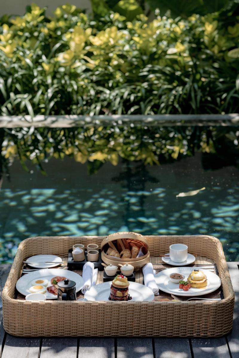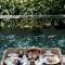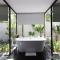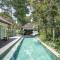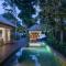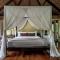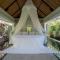 The villas, ranging from one to three-bedroom options, are expansive enclosed spaces, elegantly designed to capture the relaxed mood of a tropical residence. The design integrates traditional Indonesian motifs with modern touches, often featuring four-poster beds and semi-open bathrooms overlooking private gardens, creating an atmosphere of romance and serenity.