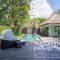 This spacious villa features a large swimming pool, living room and dining area with gourmet kitchen, an open-air hot tub, and air-conditioned bedrooms with private bathroom.