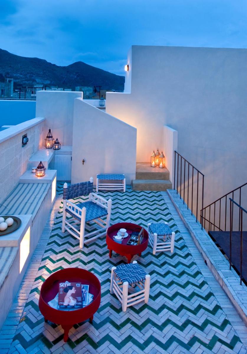 Outdoor areas for leisurely breakfasts and after‑beach pauses, among pergolas and aromatic plants. By evening, the terrace turns into an open‑air lounge.